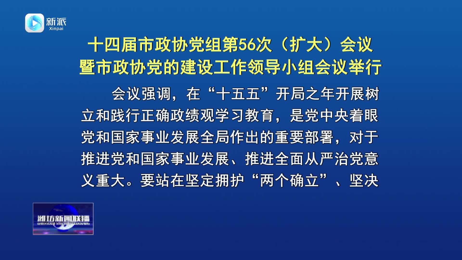 【潍坊新闻联播】十四届市政协党组第56次(扩大)会议暨市政协党的建设工作领导小组会议举行