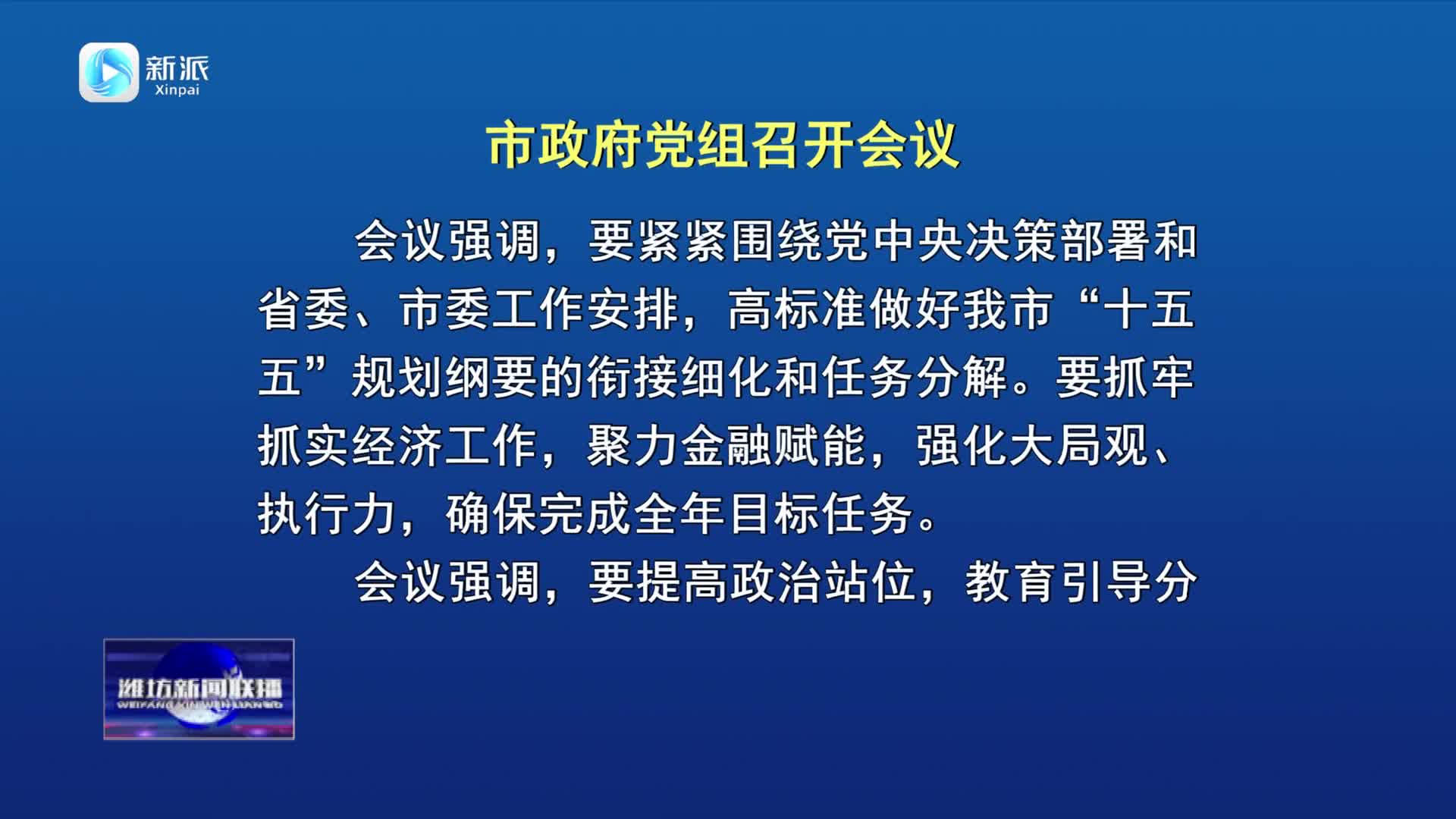 【潍坊新闻联播】市政府党组召开会议