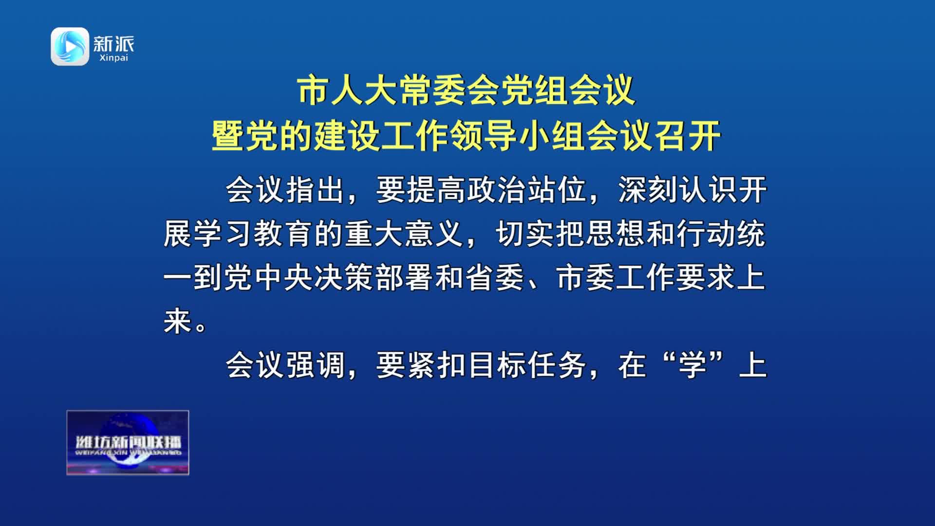 【潍坊新闻联播】市人大常委会党组会议暨党的建设工作领导小组会议召开