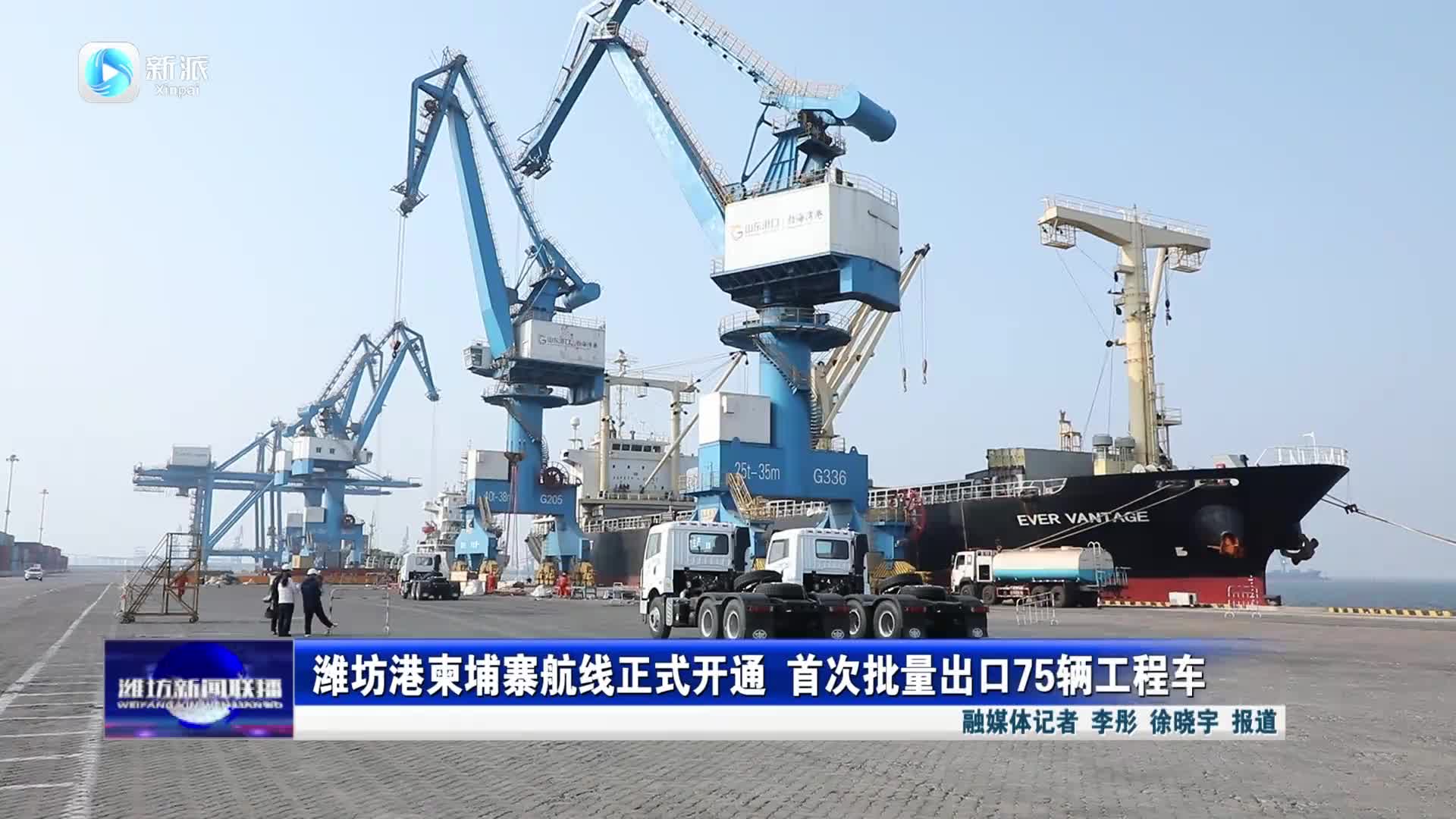 【潍坊新闻联播】潍坊港柬埔寨航线正式开通 首次批量出口75辆工程车