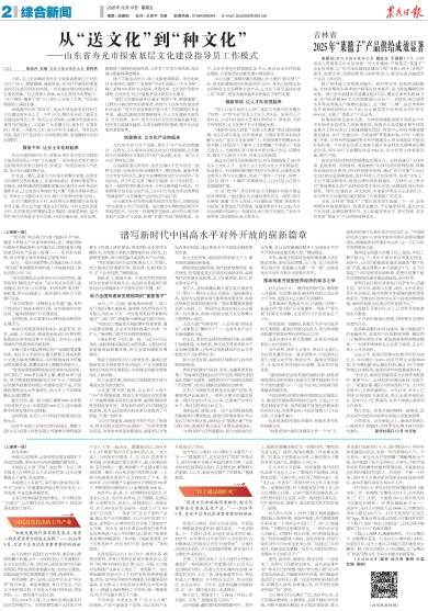 从“送”到“种”,背后折射出文化赋能乡村振兴理念的深刻转型。“通过基层文化建设指导员这一纽带,将文化精准‘滴灌’至乡土深处,不仅描绘出‘颜值’更高的乡村画卷,更塑造出气质更佳、底蕴更厚的乡村之魂,为乡村全面振兴探索出一条富有生命力的文化路径。”寿光市委常委、宣传部部长袁义林表示。