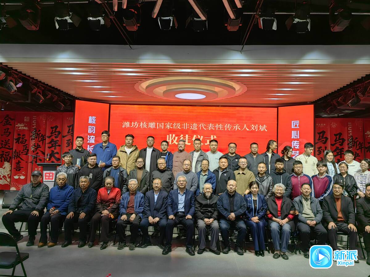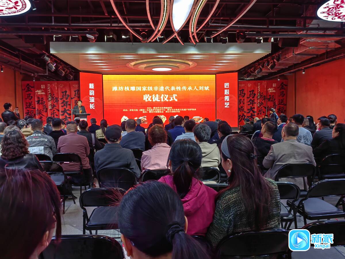 新派讯 方寸核雕凝匠心,薪火相传续新篇。4月8日下午,由市文化和旅游局主办,齐鲁文化(潍坊)生态保护区服务中心、潍坊市非物质文化遗产保护协会承办的“匠心传艺・核韵流长”潍坊核雕国家级非遗代表性传承人刘斌收徒仪式在潍坊市非物质文化遗产馆隆重举行,31名弟子正式拜入刘斌门下,为潍坊核雕这一北派核雕艺术的传承发展注入新鲜血液。