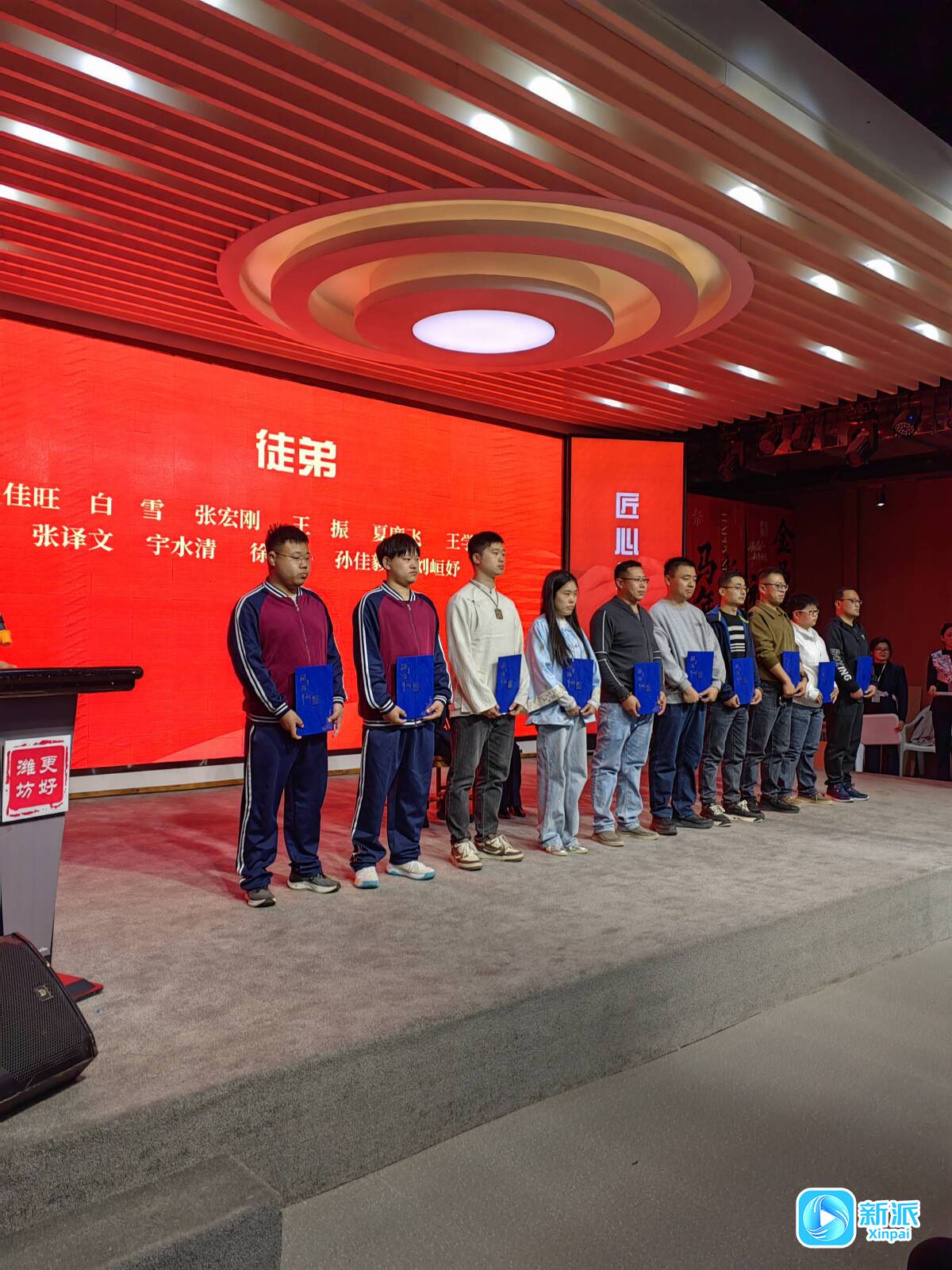 随后,刘斌向弟子们嘱托寄语,寄予大家勤学苦练、守正创新的殷切期望;徒弟代表于金辉上台表态,承诺将牢记师父教诲,以匠心守初心,传承好潍坊核雕技艺。
