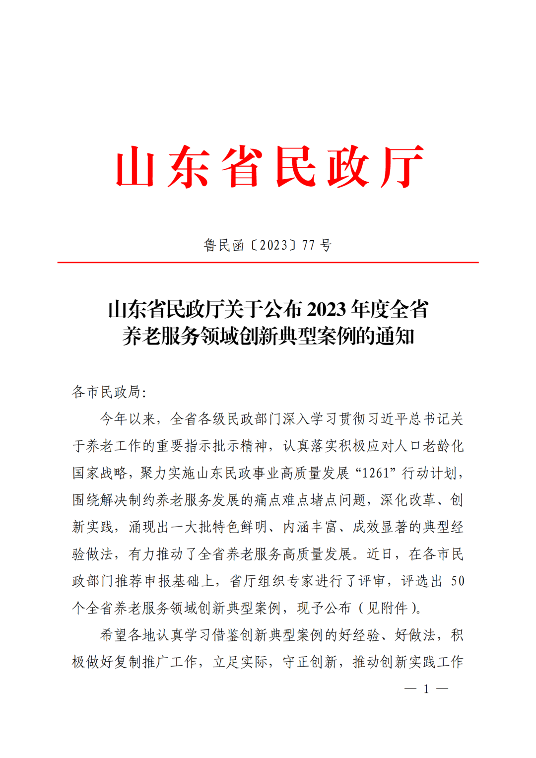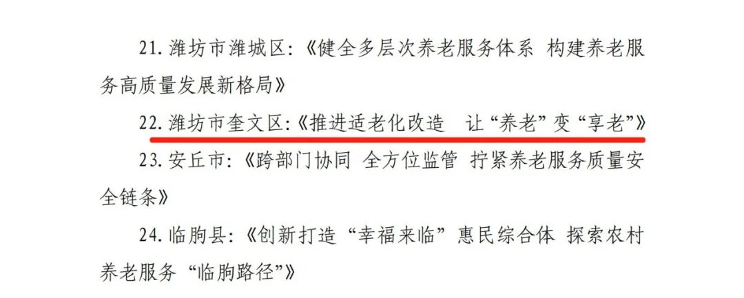 近日,山东省民政厅公布2023年度全省养老服务领域创新典型案例,奎文区推进适老化改造,让“养老”变“享老”典型经验获认可推广。