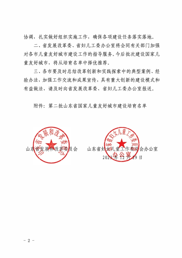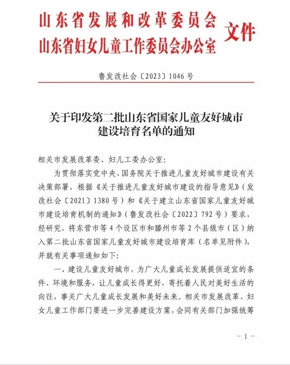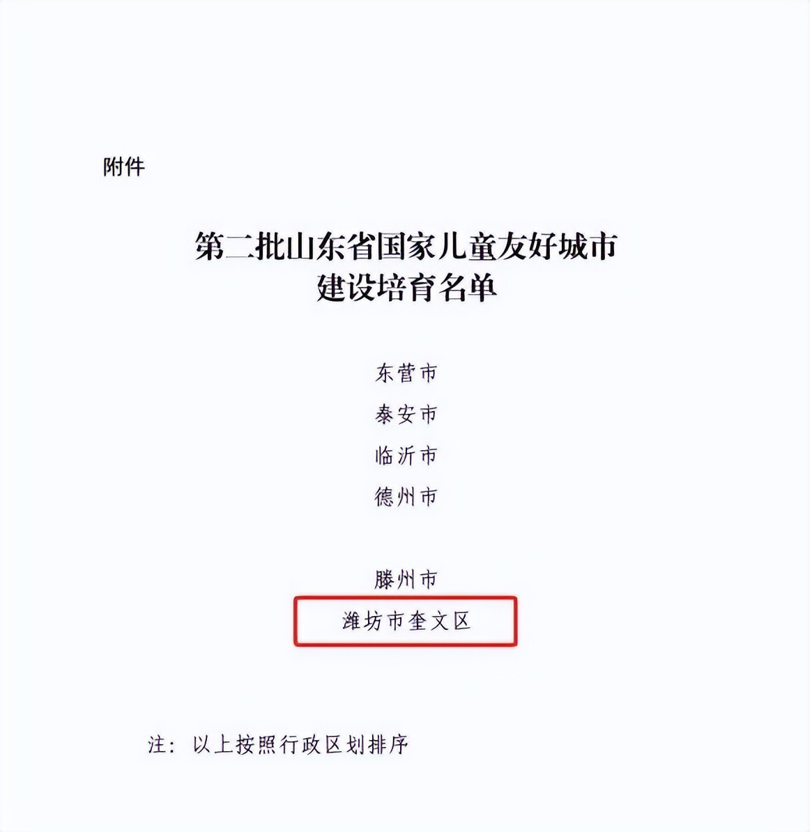 潍坊广电新媒体讯 近日,省发展改革委、省妇儿工委办联合印发通知,公布山东省第二批国家儿童友好城市建设培育名单,奎文区作为潍坊市唯一县市区入选,也是截至目前全省唯一入选培育名单的区。