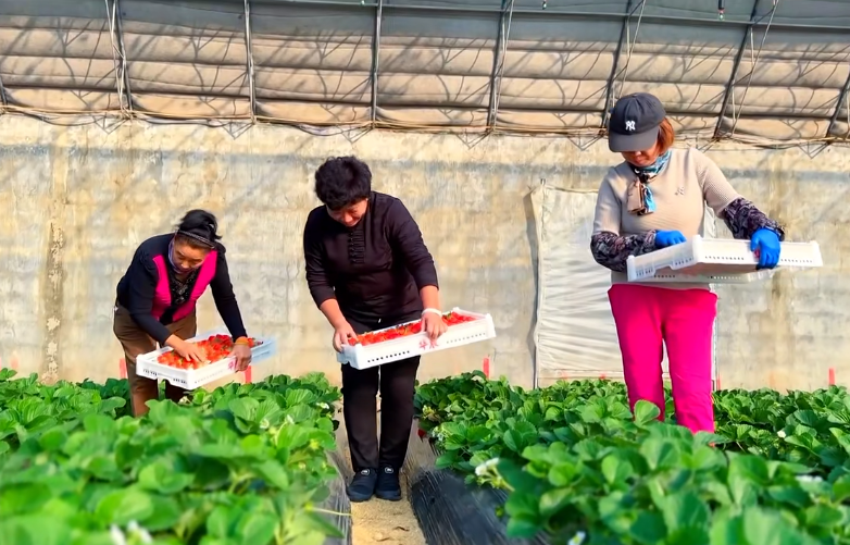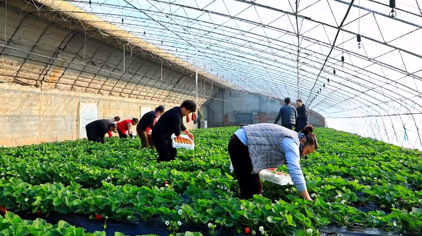 红彤彤的草莓,呈现出一片红火的丰收景象。草莓大棚不仅使群众的腰包鼓了起来,也为当地村民创造了更多就业机会,增加了村民收入。村民王桂霞告诉记者,自从草莓大棚建成后,她就在这里开始上班,感觉很满足。目前,草莓基地里像王桂霞这样的村民有30多个,大家在家门口就业,既增加了收入,又照顾了家庭。