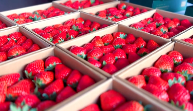“我们的草莓喝的是磁化水,吃的是有机肥,用的是蜜蜂授粉,病虫防控我们采用的是生物防治法,坚决不用化肥农药,严格控制草莓的产量,力求保证草莓的品质。产出的草莓果型饱满,色泽也鲜艳,硬度适中,风味也特别的浓郁,远销北京、上海等地。我们的草莓获得了有机认证,也荣获12届中国草莓文化节的金奖。”蔡星成告诉记者。