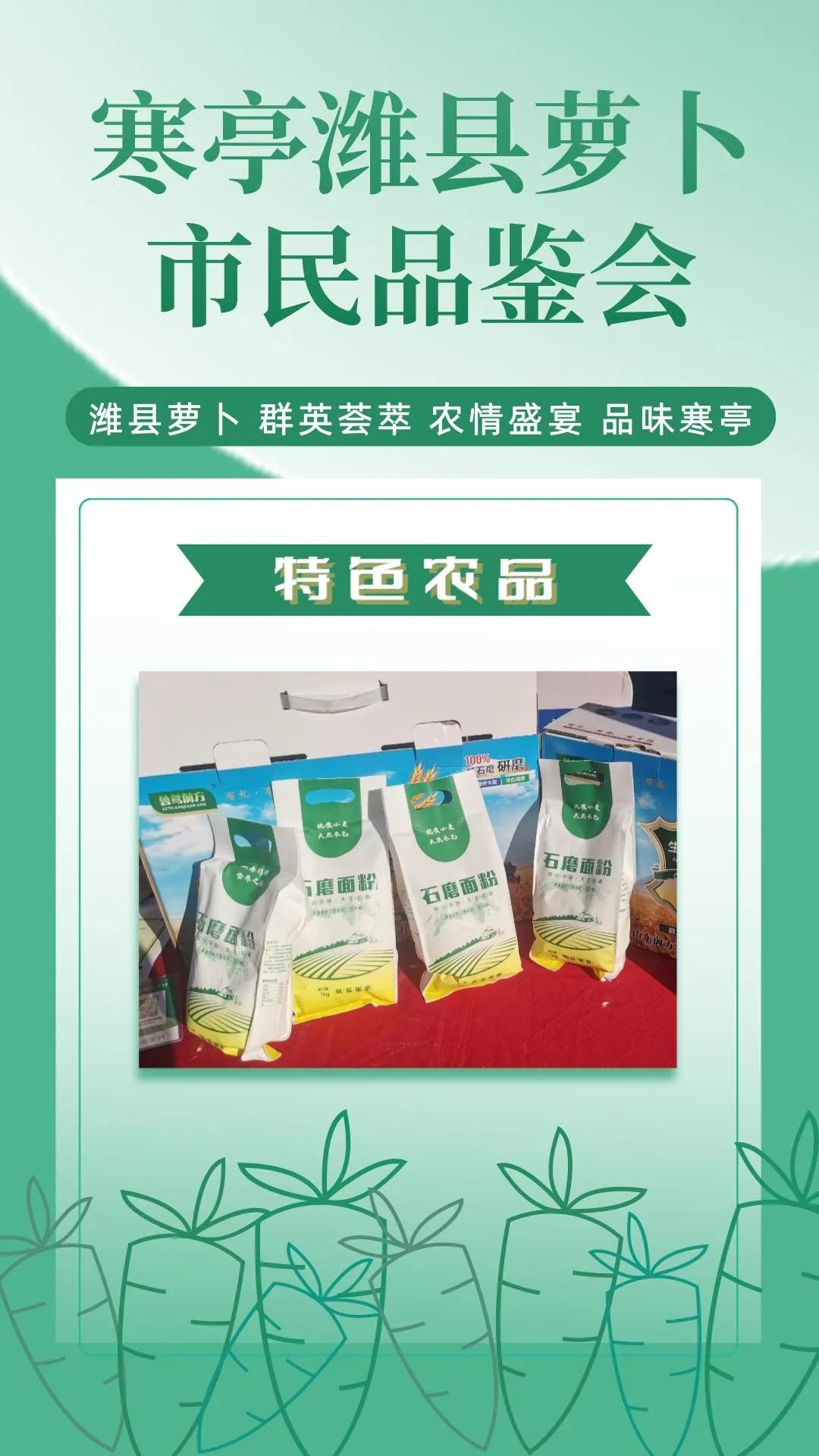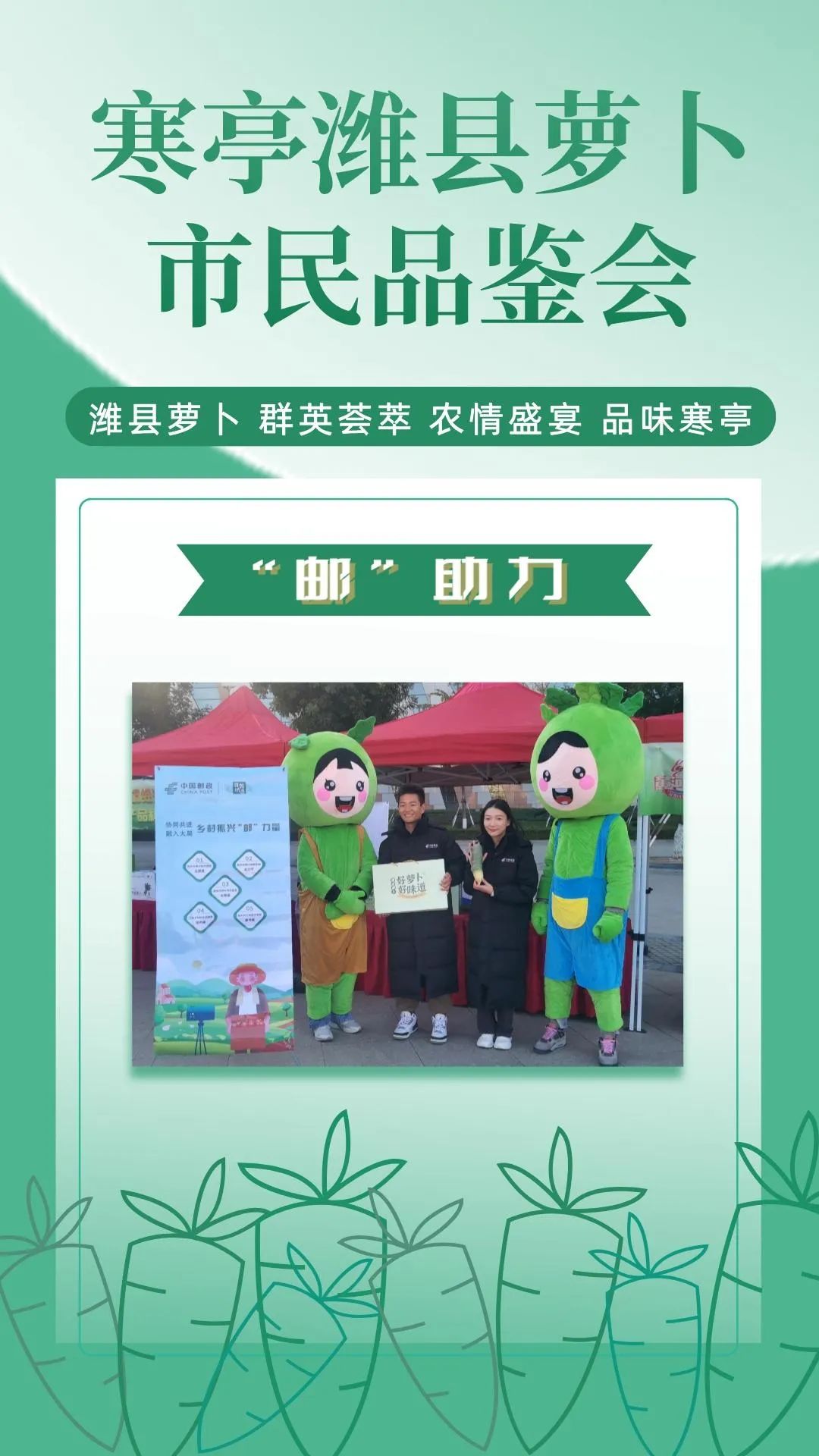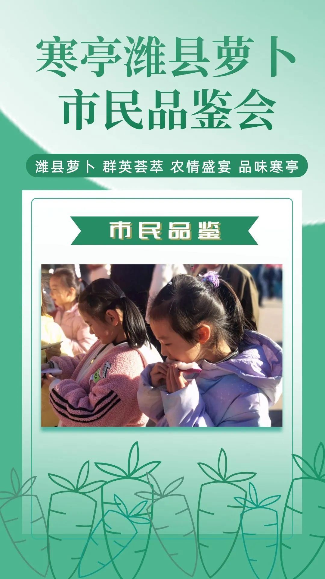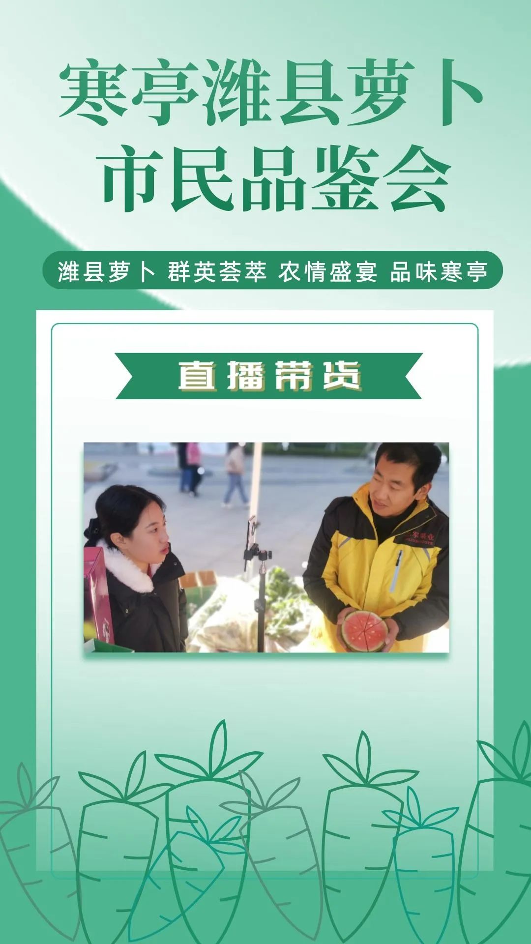 群英荟萃萝卜开会今日上午潍县萝卜市民品鉴会在潍坊市人民广场如期举行来自潍坊市寒亭区的37家萝卜种植企业将自己的特色农品摆上展位通过宣传推介走向大众视野现场人头攒动、热闹非凡!话不多说,直接上图,一起云品鉴!
