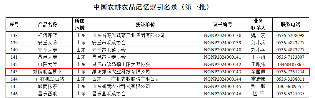 近日,中国绿色食品发展中心公布全国第一批《中国农耕农品记忆索引名录》,潍坊市寒亭区的郭牌瓜茬萝卜农产品成功入选。