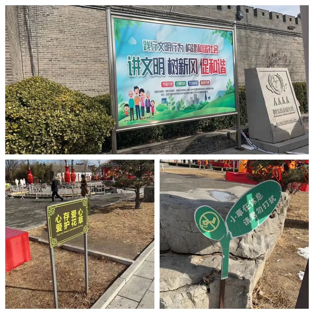 在潍坊杨家埠民俗大观园,花灯展、灯光秀、互动音乐秀、新春主题演出、烟花秀等多彩活动,为市民游客提供一场沉浸式的龙年文化盛宴。“践行文明行为构建和谐社会”“小草在休息请君勿打扰”……为营造良好的旅游环境,寒亭区在景区内设置了文明旅游提示牌,引导游客文明旅游,增强文明旅游意识。