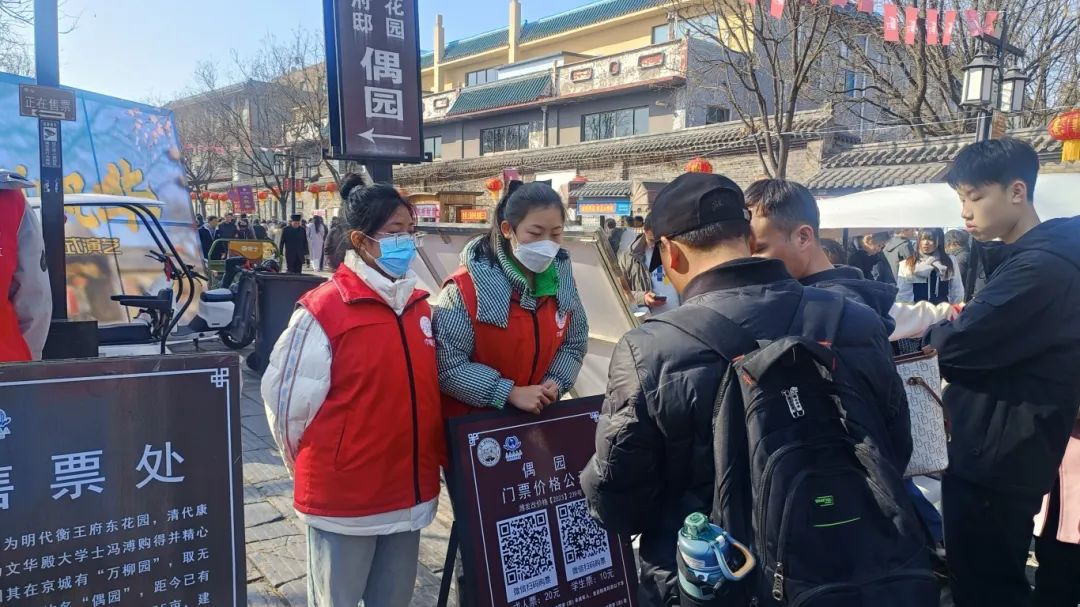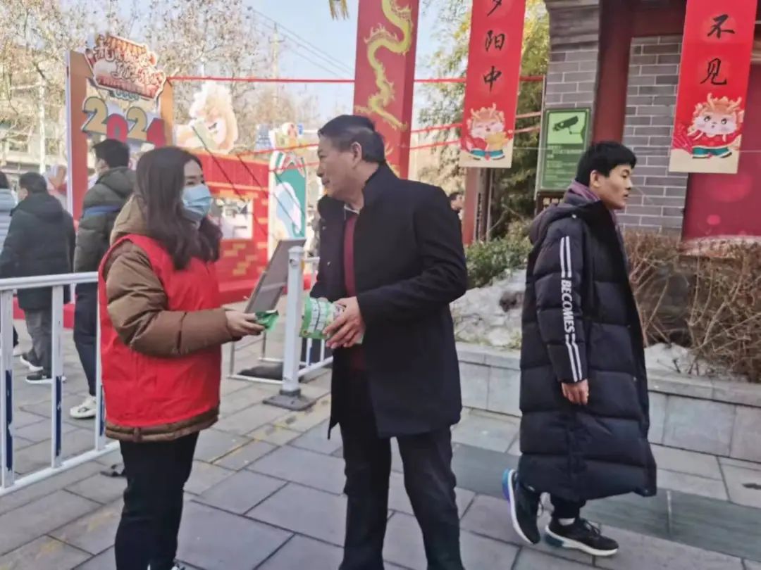 在潍坊十笏园文化街区,“龙腾盛世·更好潍坊”——2024潍城区十笏园新春国潮庙会灯会活动正如火如荼地举行着,处处洋溢着新春佳节的喜庆氛围。这里热闹非凡,游人如织,虽然人流量大,但环境整洁,游客参观井然有序。潍城区组织志愿者在庙会活动现场发放《潍城区文化旅游地图》,为游客提供旅游安全宣传、线路指引、旅游咨询服务,同时,开展捡拾垃圾、协助维护景区秩序等志愿服务工作,引导广大游客文明出行、文明旅游。