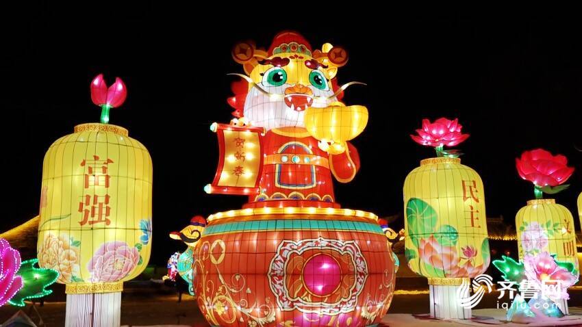 据介绍,今年,潍坊杨家埠民间艺术大观园花灯会将花灯与风筝、年画等元素相结合,展示了一系列特色非遗文创品。