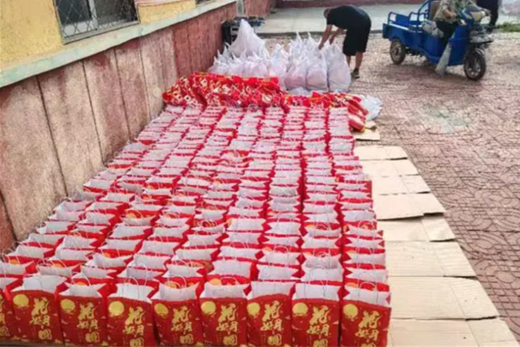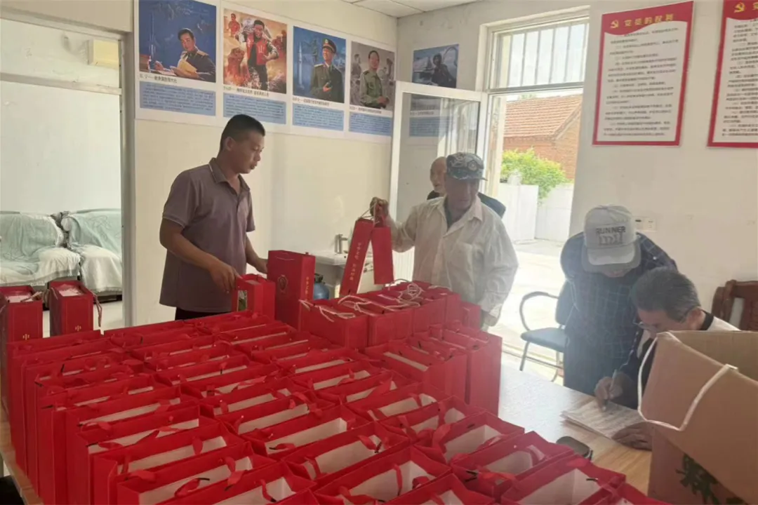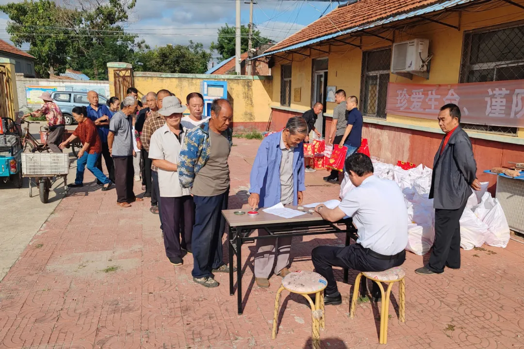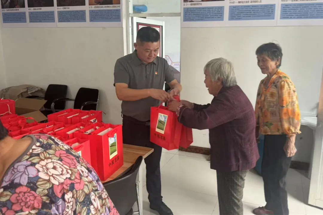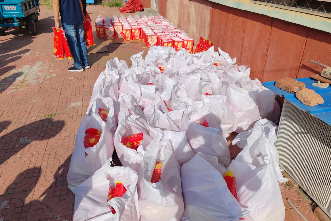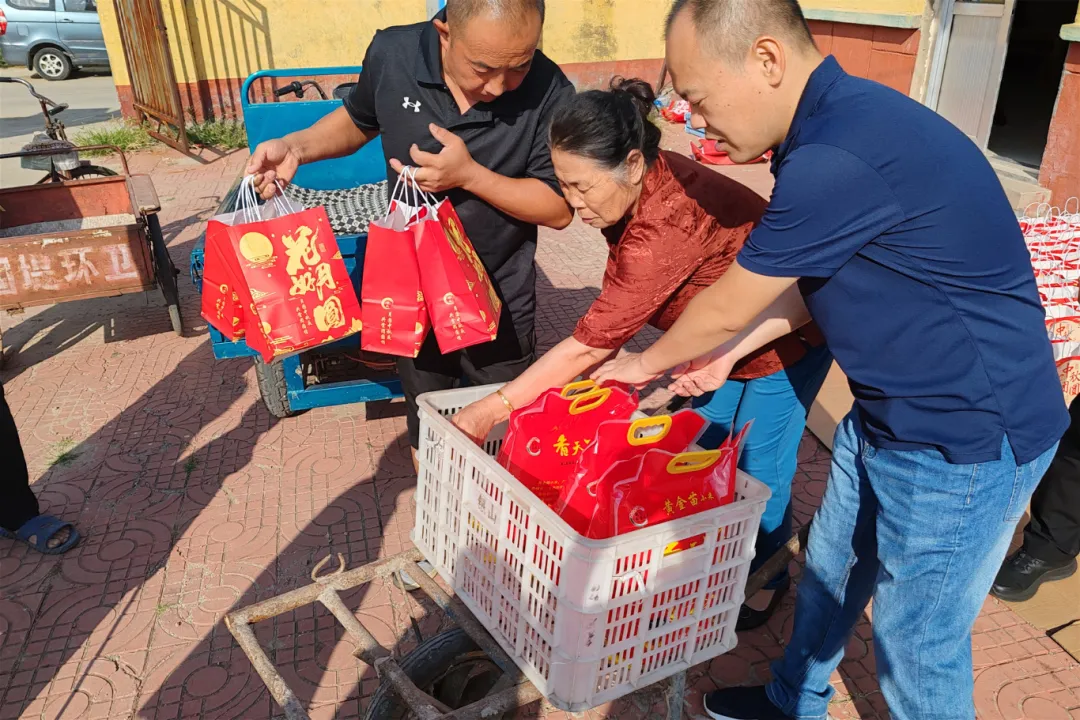 街道北寨四村、北于家码头村、李家营村分别免费为村里213名70周岁、213名65周岁以上老人发放茶叶、月饼、小米、牛奶等爱心物资,为他们送去一份关心、送上一个祝福,让这个中秋爱意浓浓、温情满满。