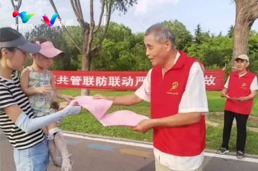 参与防溺水志愿服务的还有 “银领聚坊”离退休干部志愿服务队及青年志愿者们,他们不顾酷暑炎炎,向水域周边居民发放防溺水宣传单,讲解安全常识,提高青少年儿童自身安全意识和自我保护能力。