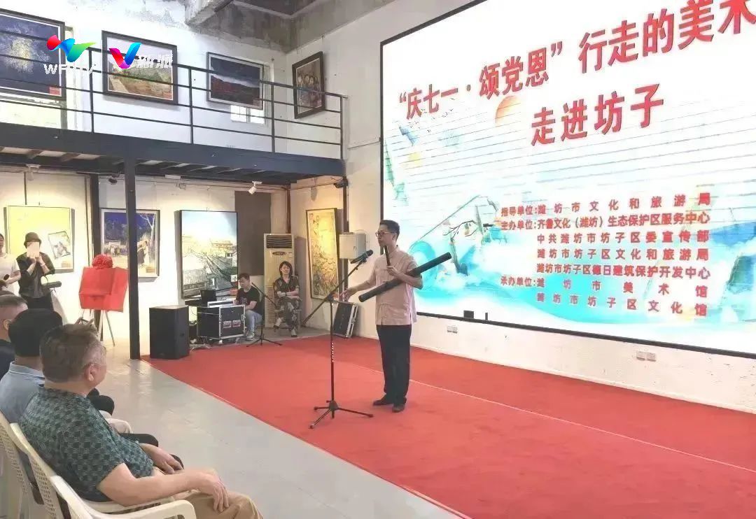 6月30日,坊子区“庆七一 颂党恩”群众书画展暨市美术馆坊子分馆授牌仪式在坊子区坊茨小镇圆满举行。仪式上,坊子区文旅局组织开展了“行走的美术馆”系列活动走进坊茨小镇文艺演出,歌曲、山东快书幽默小段、古筝独奏、二胡独奏等精彩的文艺节目获得了现场观众的阵阵掌声。