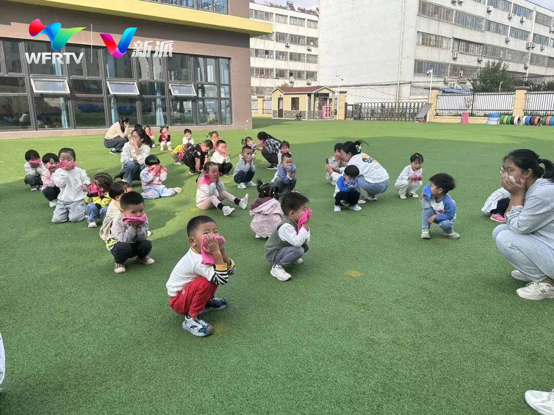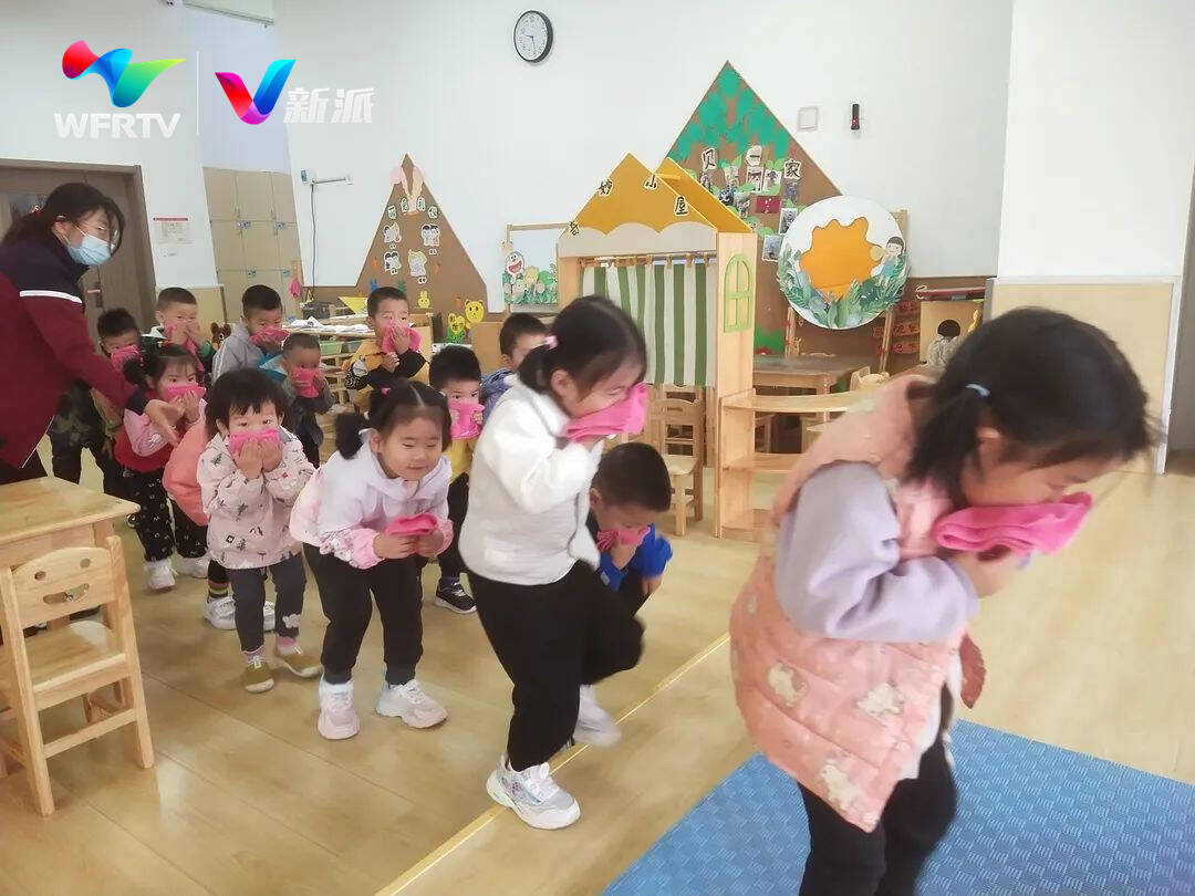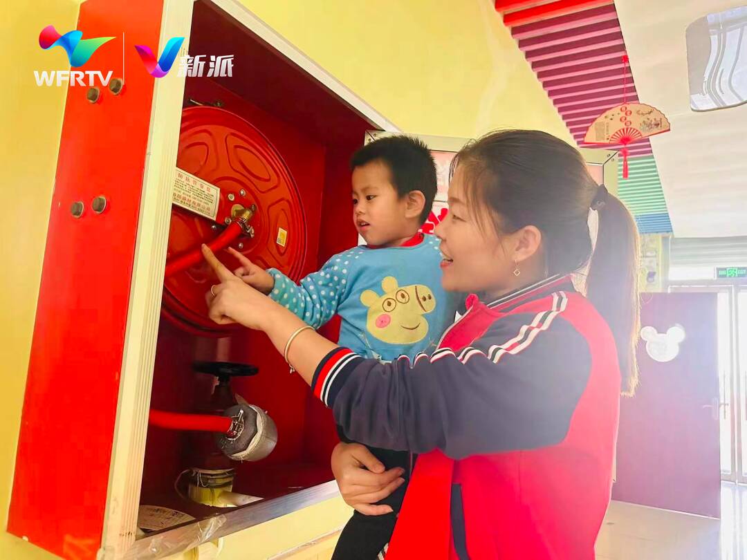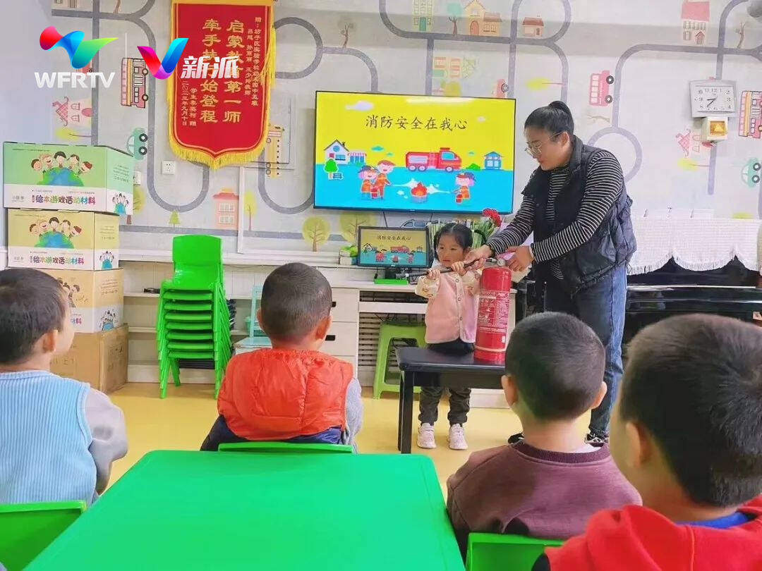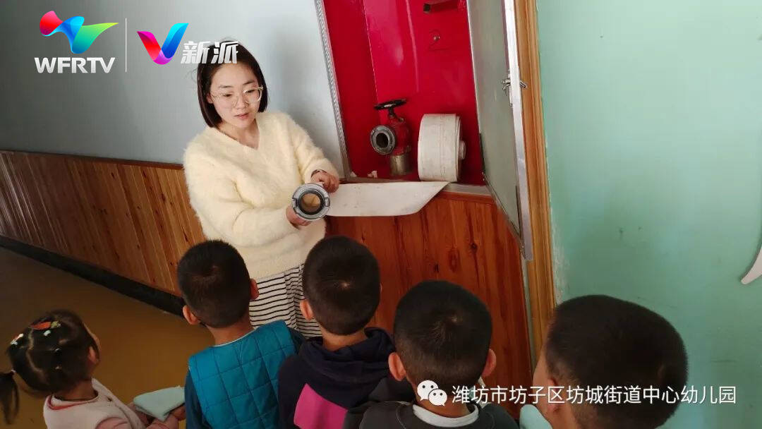坊子区第二实验幼儿园的老师提前规划部署、检查器具,指导学生有序进行消防安全应急疏散演练。
