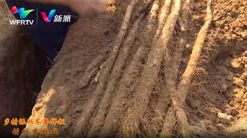潍坊广电新媒体讯 眼下,正是山药收获的大好时节。在坊子区黄旗堡街道夹河套村的大田里,村民们在山药地里忙碌着,新挖出的铁棍山药,裹着浓浓的泥土味,被整齐地码放在沟垄旁和储存架上,村民们脸上洋溢着丰收的喜悦,现场一派丰产丰收的和美景象。