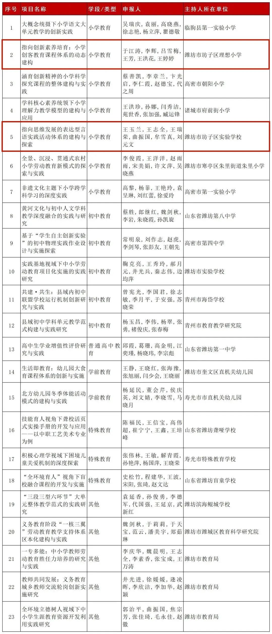 近日,省教育厅(省委教育工委)官网发布《山东省基础教育教学改革项目拟立项名单公示》,根据专家评审意见,拟确定35项为重点项目,其中潍坊4项,203项为一般项目,其中潍坊23项。下面和小编一起来看详细内容~