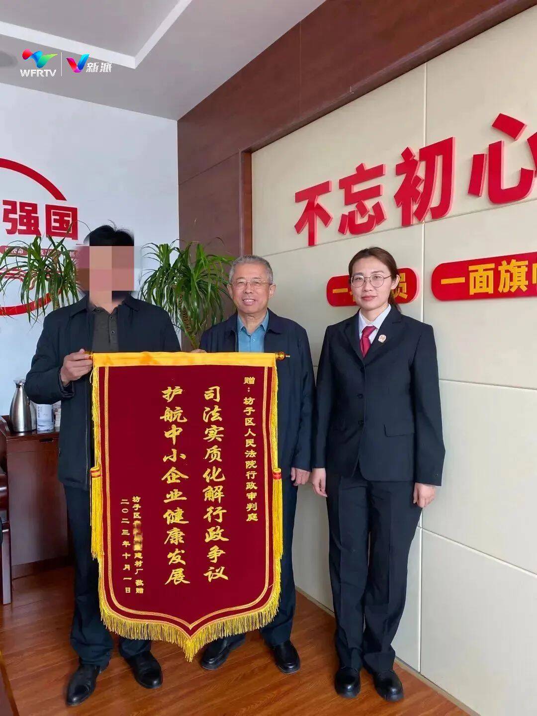 近日,坊子法院行政庭收到某企业负责人送来的一面印有“司法实质化解行政争议 护航中小企业健康发展”的锦旗,这是坊子法院助力法治政府的生动体现。