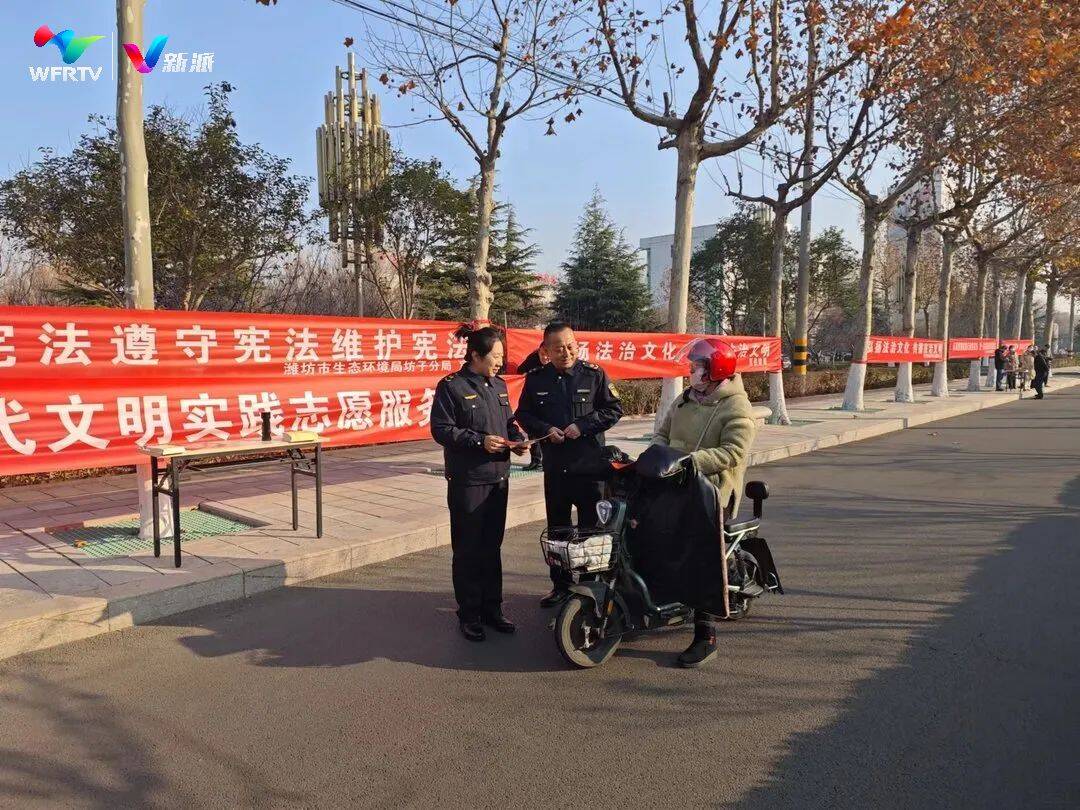 国家宪法日当天,潍坊市生态环境局坊子分局在凤凰大街开展国家宪法日宣传活动。