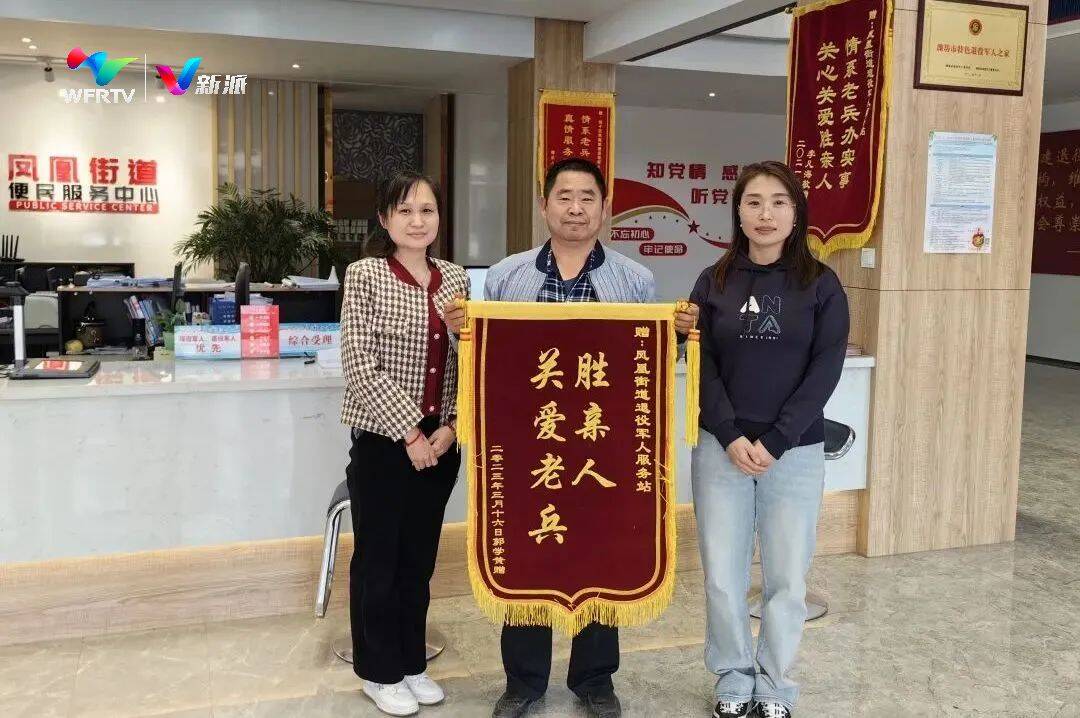 2023年4月,坊子区凤凰街道退役军人服务站收到一面写着“关爱老兵胜亲人”的锦旗。这是一名参加过抗美援朝战争的老兵委托儿子送过来的,表达心中对服务站工作人员暖心服务的谢意。
