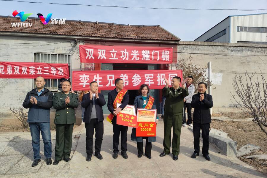 2023年春节前,潍坊市坊子区九龙街道杨庄村的杨新润、杨新泽双胞胎兄弟在部队同时荣立三等功,两人分别将证书、勋章寄回家中,与家人共享喜悦。