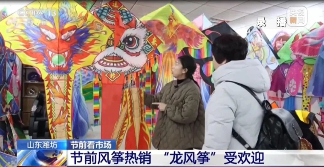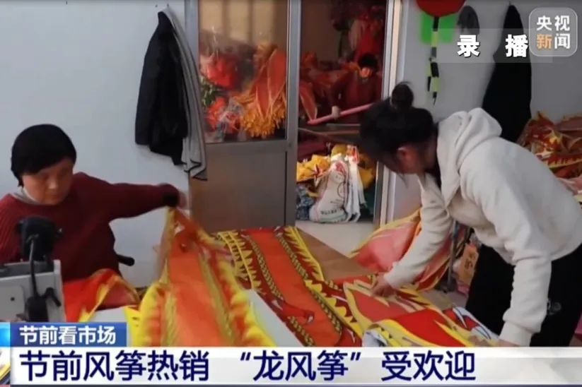坊子区王家庄子村一直有做风筝、卖风筝的传统。今年,村民把生肖龙和国潮元素融入风筝款式,一上市就卖断了货。