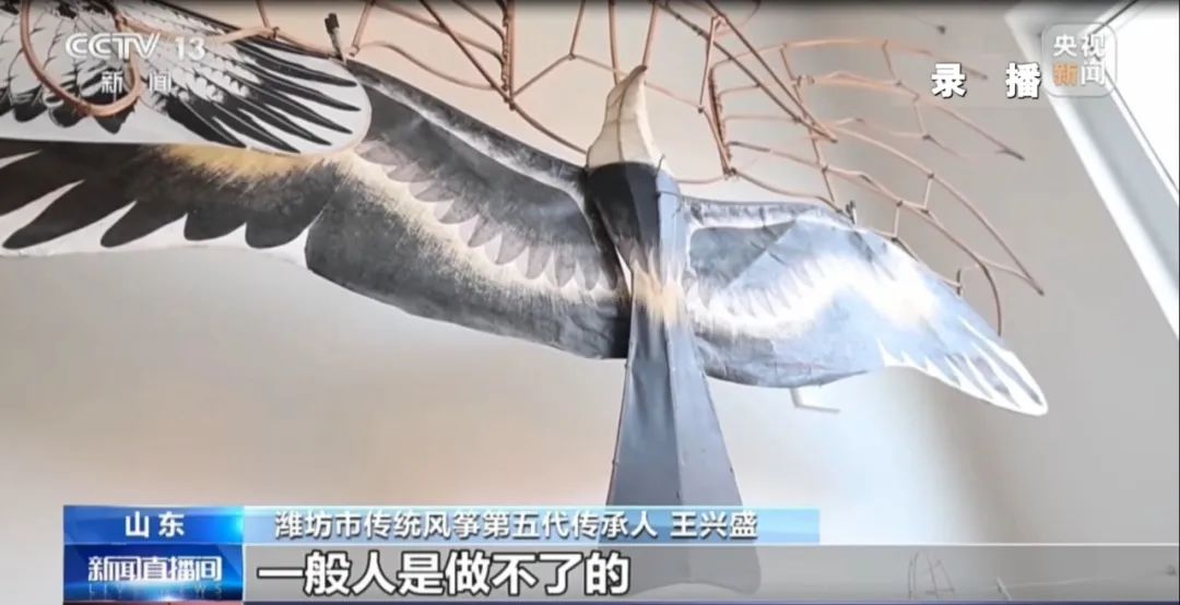 潍坊市传统风筝第五代传承人王兴盛在这里已经干了40多年,王兴盛告诉记者,手边的这只盘鹰在市面上几乎见不到了,制作出来需要二十几道工序,费时费力,却可以放十几二十年,不腐坏不变质。