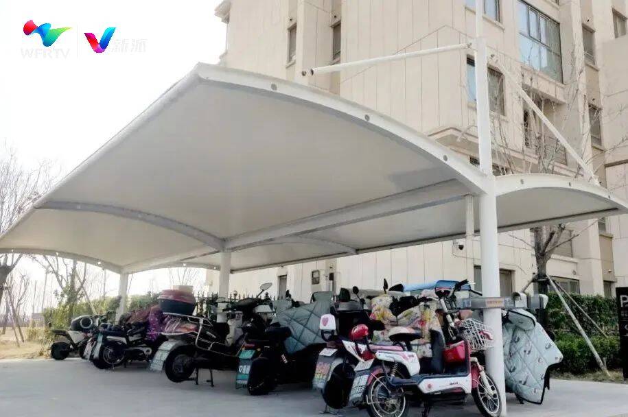 近日,记者走进凤凰街道一小区,在居民楼之间,白色的车棚十分引人注目。