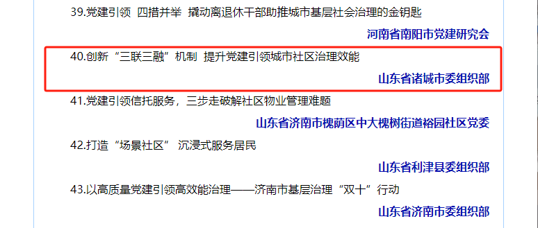 潍坊广电新媒体讯 日前,全国党建研究会社区专委会、上海市党建研究会、组织人事报社共同举办的“全国社区党建创新案例”评选揭晓。诸城市推选的《创新“三联三融”机制提升党建引领城市社区治理效能》成功入选优秀案例,成为全潍坊县市区唯一获评案例。