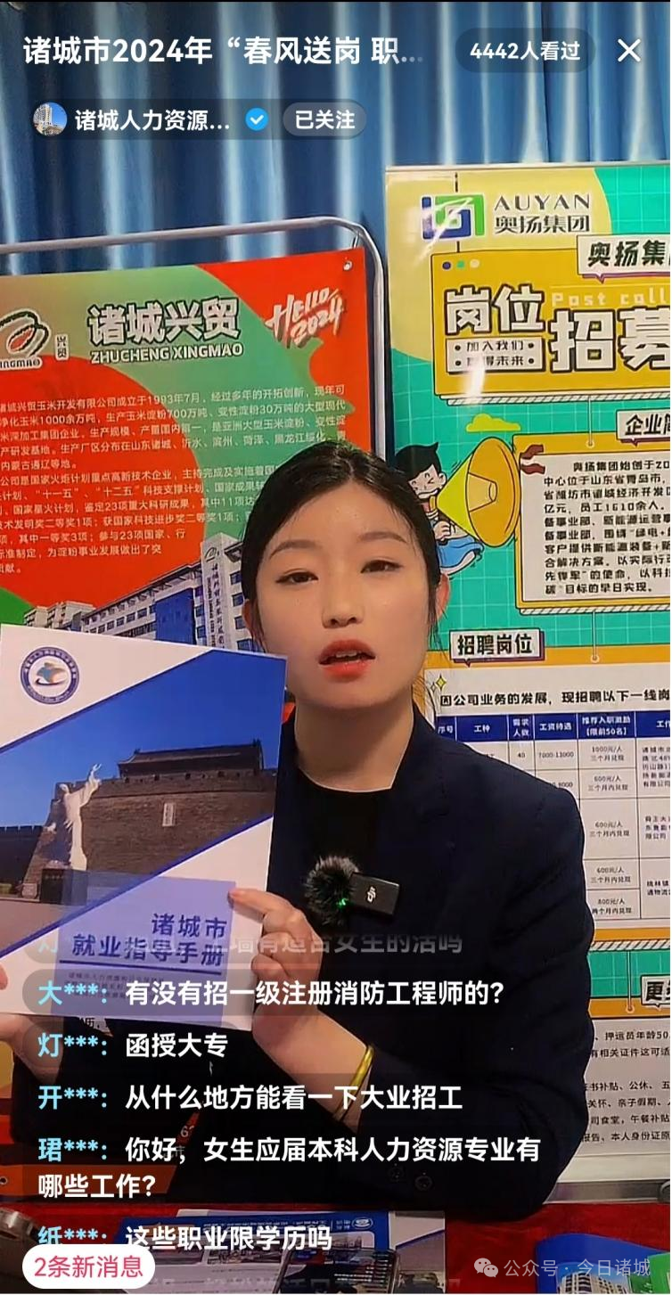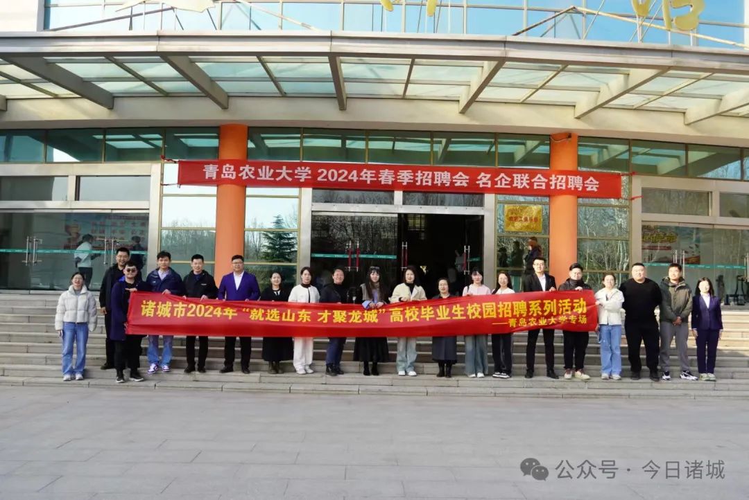 校地合作“双向奔赴”。为抢占人才入诸就业创业先机,3月15日,诸城市人社局组织福田汽车、得利斯食品、软控联合等24家诸城龙头企业,走入青岛农业大学,为应届毕业生带去各类工程师、研究员、储备管理人才等岗位1000余个,打响2024年“就选山东才聚龙城”系列校园招聘会第一枪,活动现场累计收取简历926份。