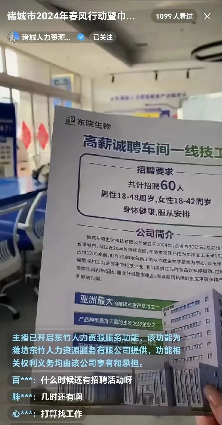为延伸供求服务触角,让企业在家门口招到稳定员工,3月17日,诸城市人社局组织“春风送岗职达家门”昌城镇招聘专场,得利斯集团、佳士博食品等十余家昌城企业将用工岗位带到昌城集贸市场,现场达成初步就业意向230余个。