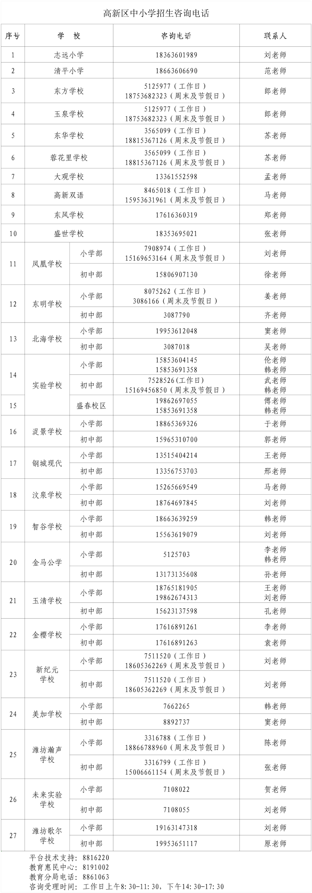 其他未尽事宜,可电话咨询就近学校或潍坊市教育局高新分局(联系电话附后)。