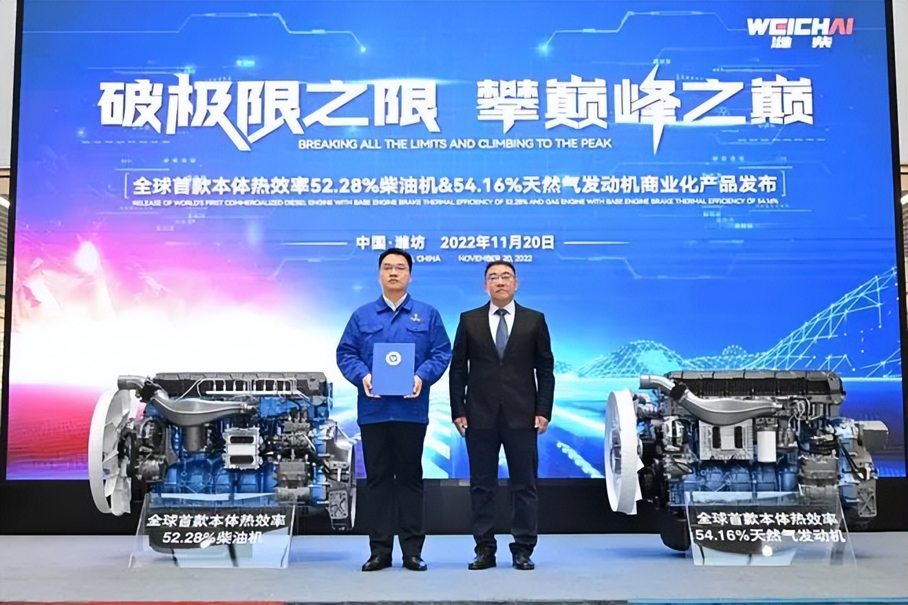 2020年9月16日,潍柴发布全球首款本体热效率50.23%的柴油机;2022年1月8日,潍柴再次将柴油机本体热效率提升到51.09%;2022年11月20日,潍柴创造了热效率52.28%的全球新纪录;如今,潍柴53%热效率柴油机已经研发完成并通过了权威机构测试,即将对外发布。4年间,潍柴4次刷新柴油机本体热效率世界纪录,持续引领全球内燃机行业发