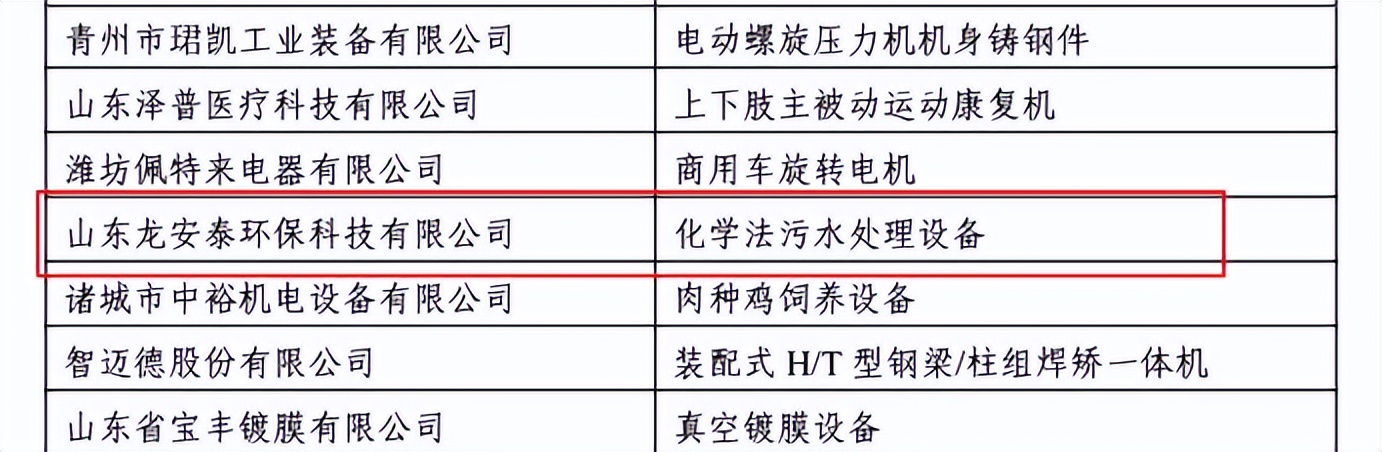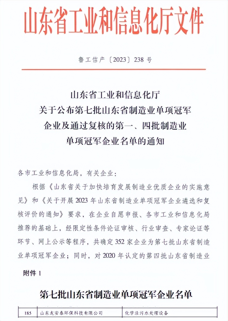 近日,省工业和信息化厅公布了山东省第七批制造业单项冠军名单,我区山东龙安泰环保科技有限公司成功入选,实现了制造业单项冠军“零”突破。