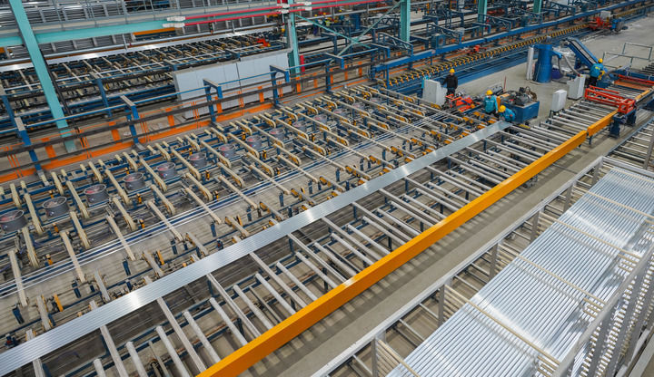 3月16日,山东省邹平市礼德新能源科技有限公司工人在太阳能板铝合金边框挤压生产线上作业。当地实施惠企工程,持续鼓励引导民营企业在节能改造、智能自动化、数字科技方面加大投入(无人机照片)。新华社记者范长国 摄