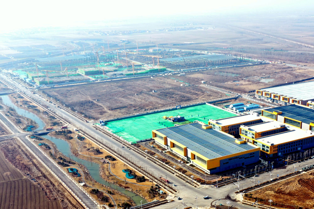 2月14日,在济南新旧动能转换起步区,比亚迪智能车零部件配套产业园项目正在建设中(无人机照片)。新华社记者朱峥 摄