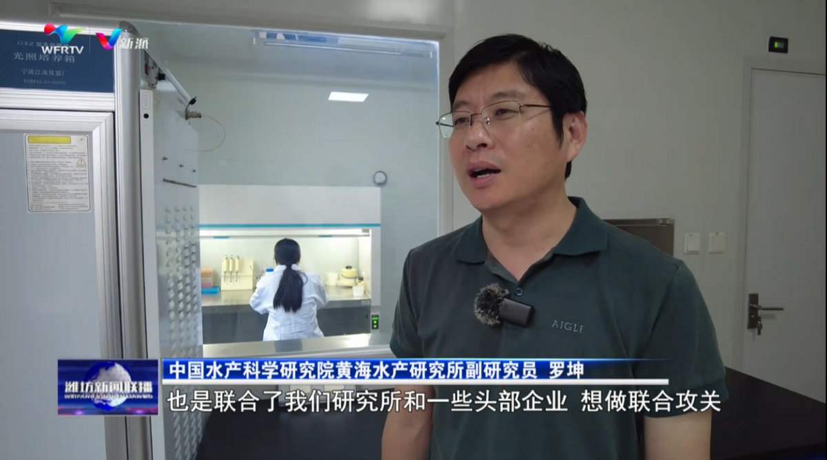 中国水产科学研究院黄海水产研究所副研究员罗坤:“主管的部门也发现了这个问题,联合我们研究所。一些头部企业,想做联合攻关,我们也是选了两年多的时间,全国筛选,落地在潍坊昌邑这个地方,主要是看这边有丰厚的地下卤水资源,盐度高,病原菌几乎是没有,政府也是主动花钱来打这口(卤水)井,让我们来做试验,我觉着这是一个政产学研相结合体系。”