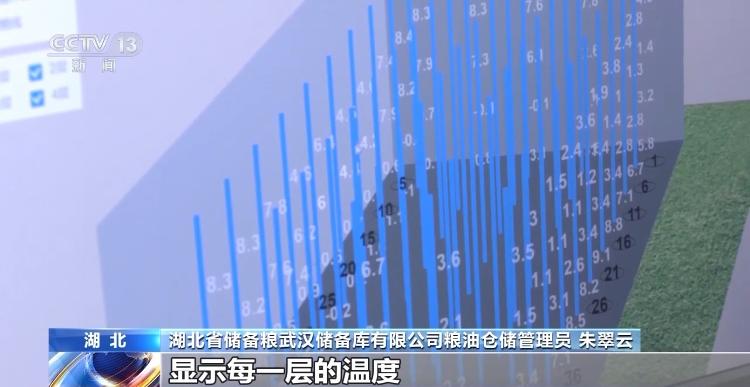 湖北省储备粮武汉储备库有限公司粮油仓储管理员 朱翠云:立体图显示每一层的温度,可以监测到粮堆每一个点位的粮温,还可以看到仓温、仓湿、气温和外面的大气湿度,更便捷、精准、高效。