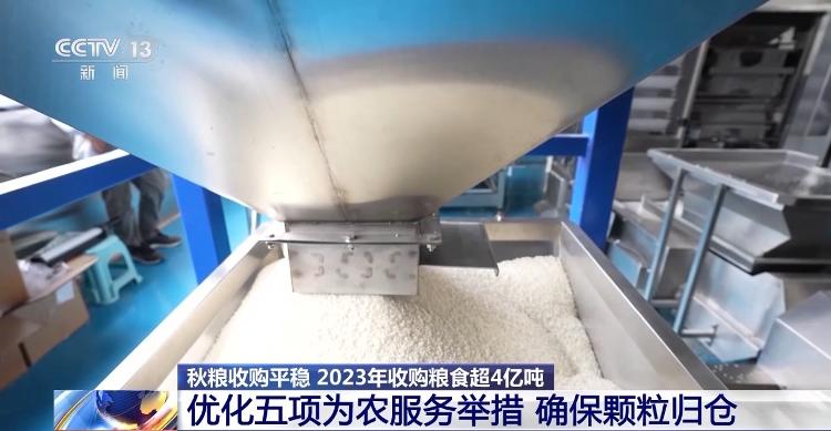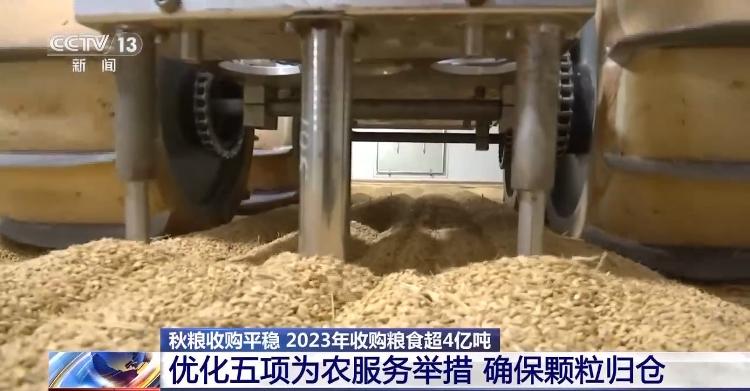记者从昨天(9日)结束的全国粮食和物资储备工作会议上了解到,2023年,全国秋粮收购平稳有序,全年收购粮食超4亿吨。