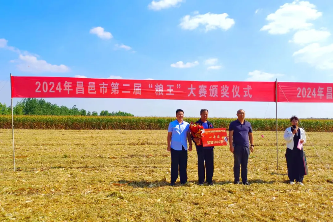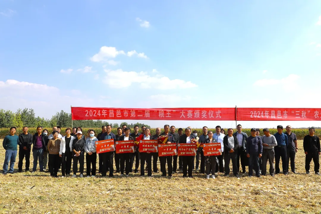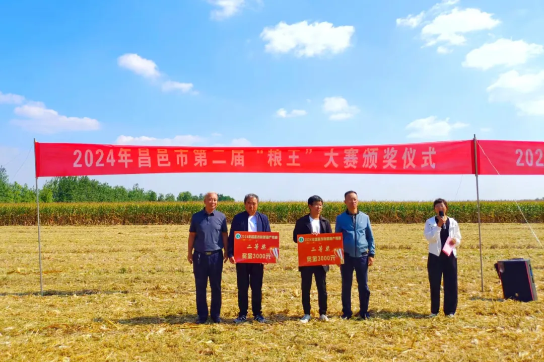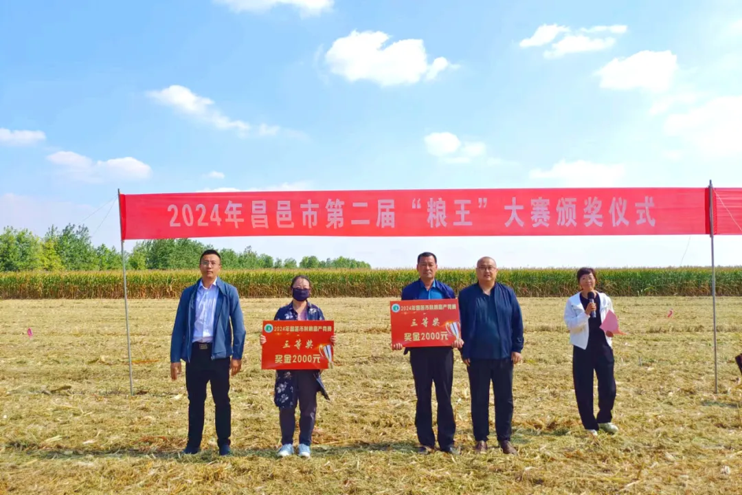 举办第二届“粮王”大赛颁奖仪式,对16个种植主体进行现场实收测产,经过激烈角逐,昌邑市禾丰棉花专业合作社获2024年昌邑市秋粮高产竞赛一等奖,昌邑市增信小麦种植专业合作社以小麦、玉米两季的高产量获2024年昌邑市粮食生产总冠军、第二届粮王大赛“粮王”称号。