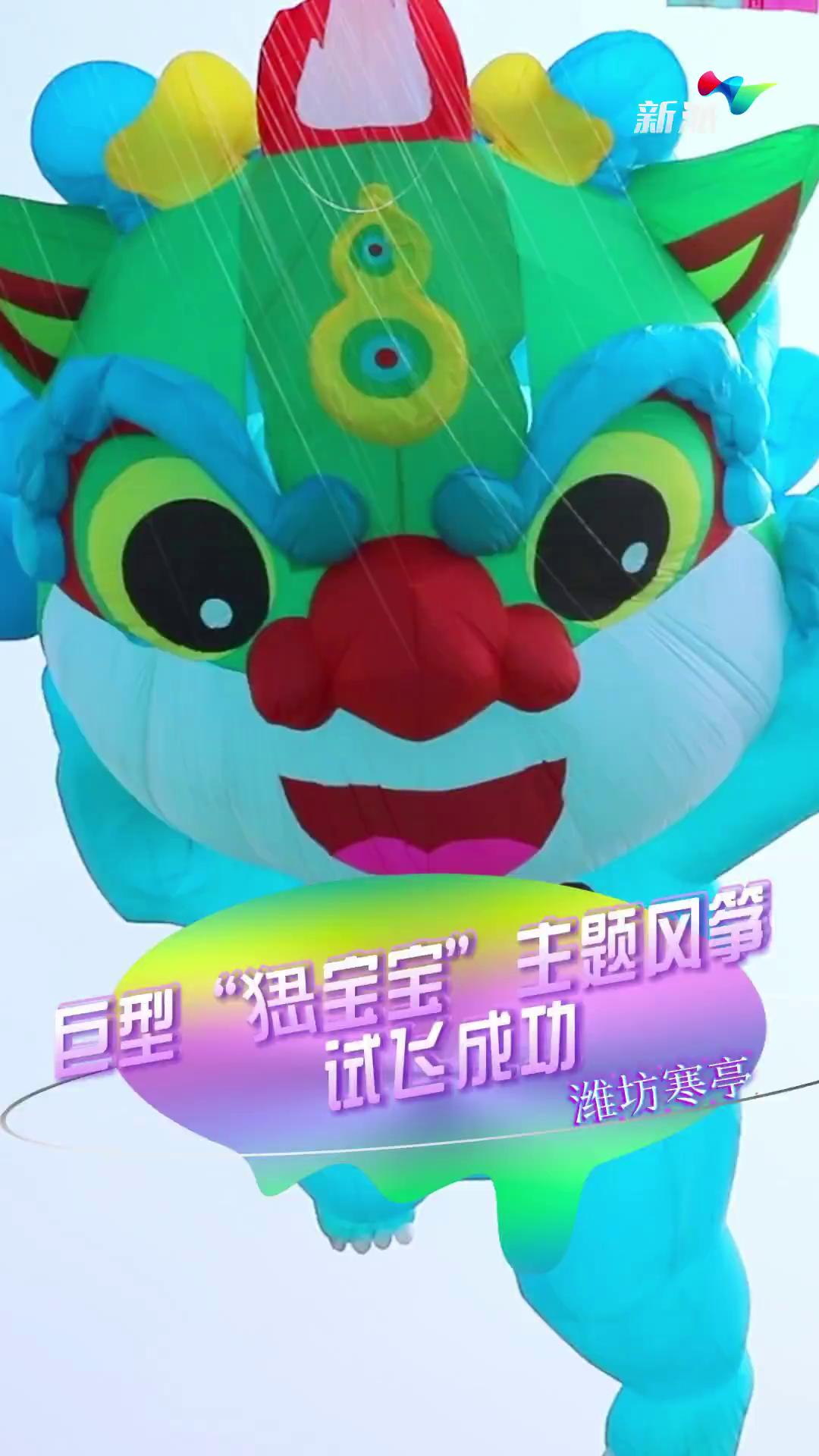 潍坊寒亭:巨型“峱宝宝”主题风筝试飞成功!