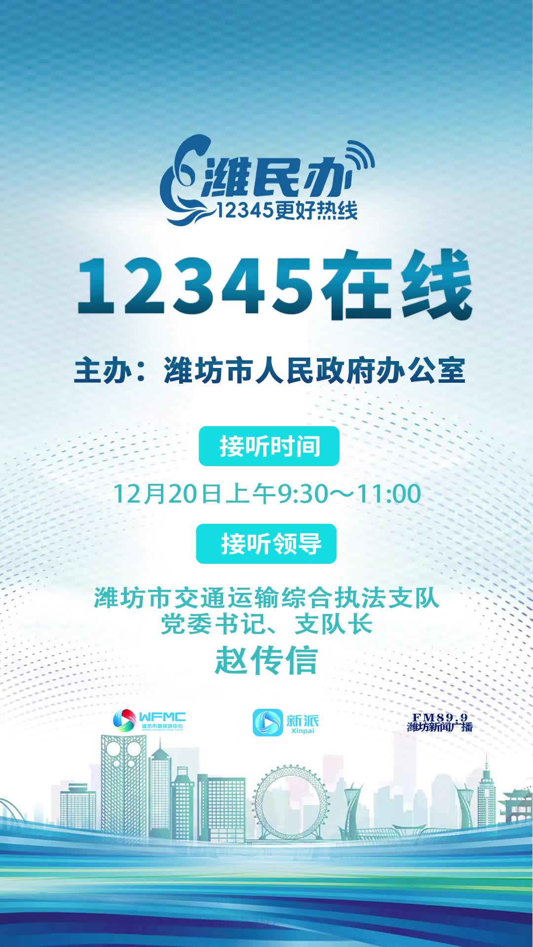 潍坊市交通运输综合执法支队党委书记、支队长赵传信将走进市融媒体中心新闻频率《12345在线》直播间接听热线