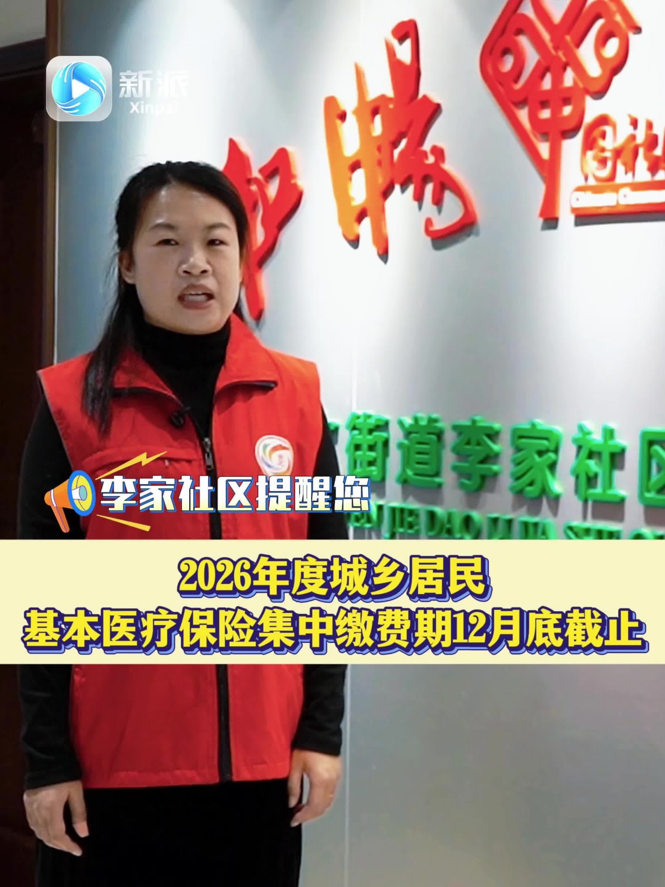 2026年度城乡居民基本医疗保险集中缴费期12月底截止