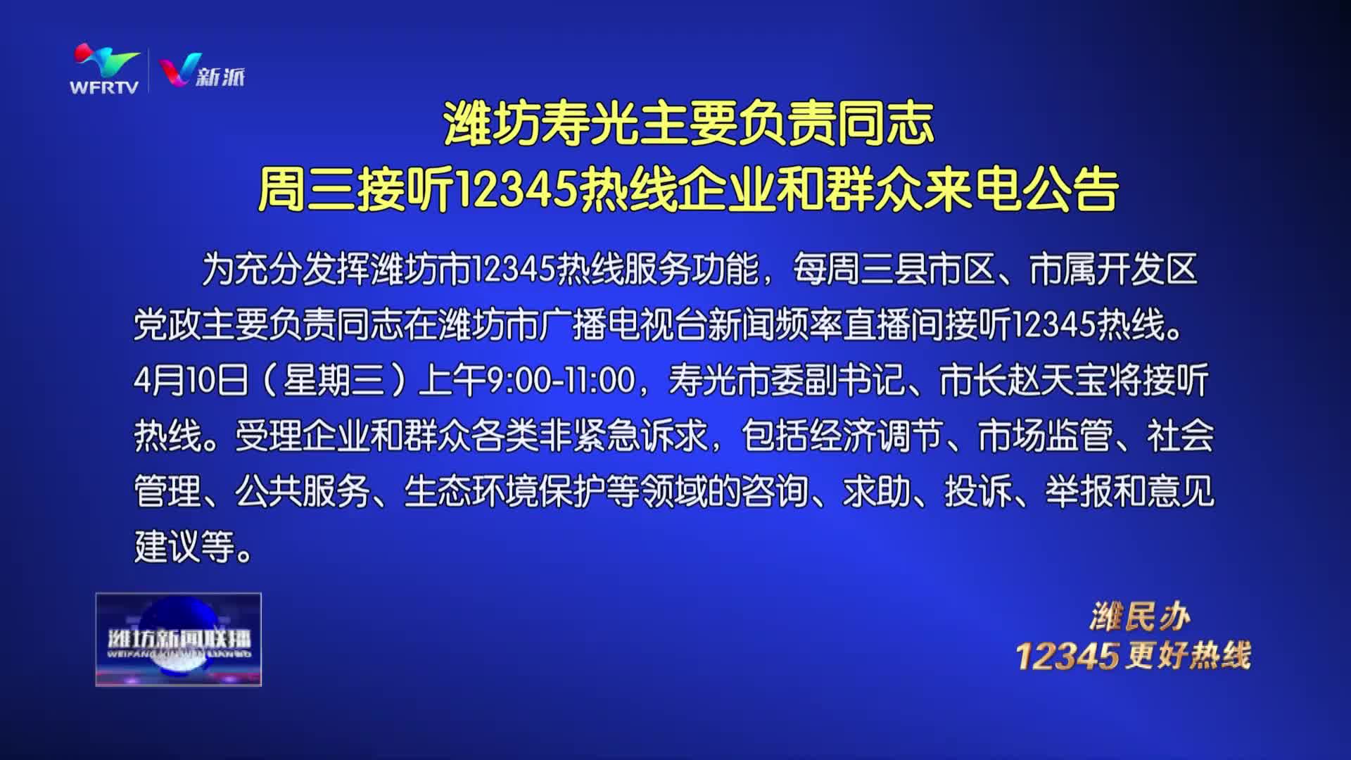 【潍坊新闻联播】潍坊寿光主要负责同志周三接听12345热线企业和群众来电公告