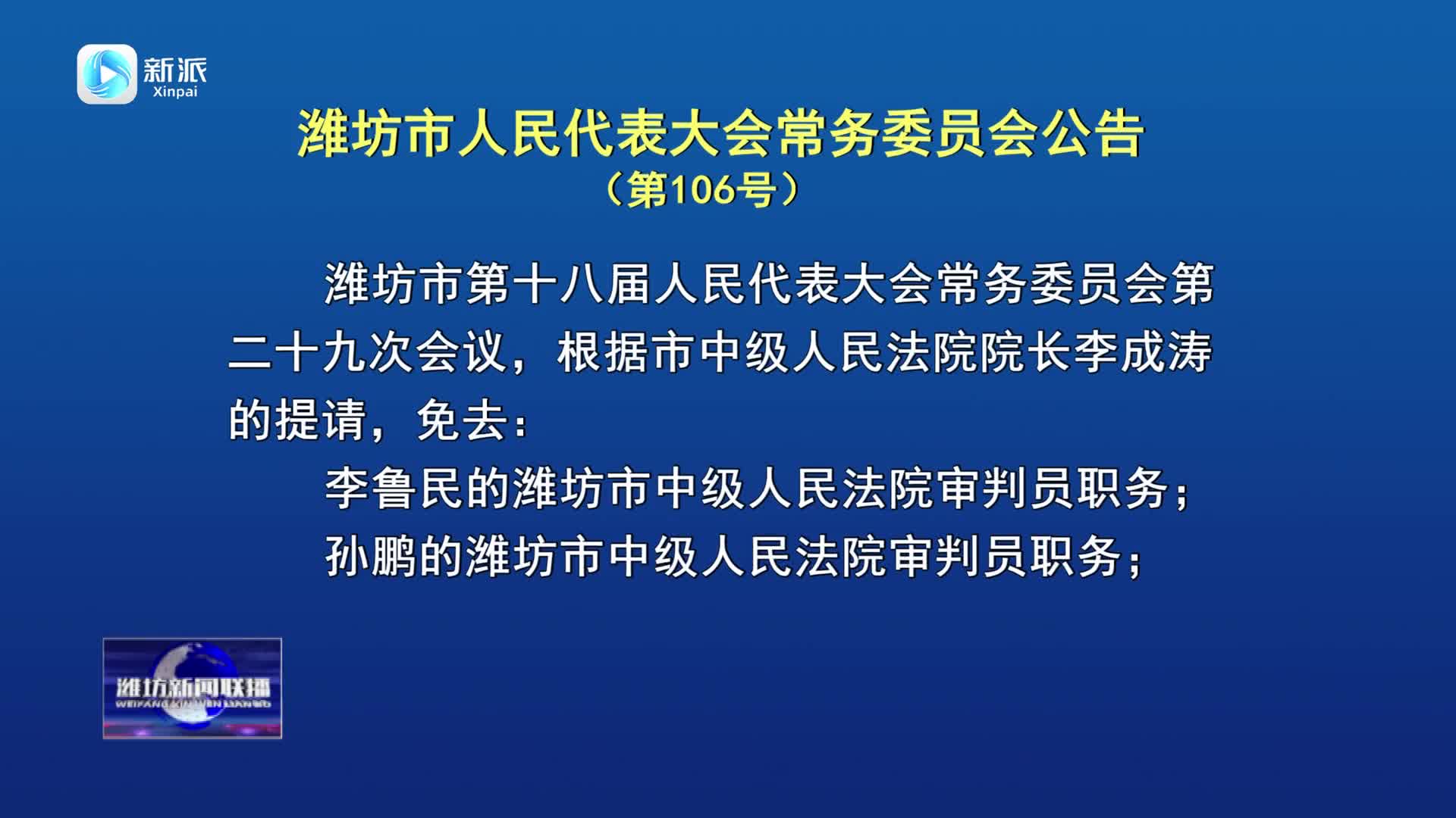 【潍坊新闻联播】潍坊市人民代表大会常务委员会公告 (第106号)
