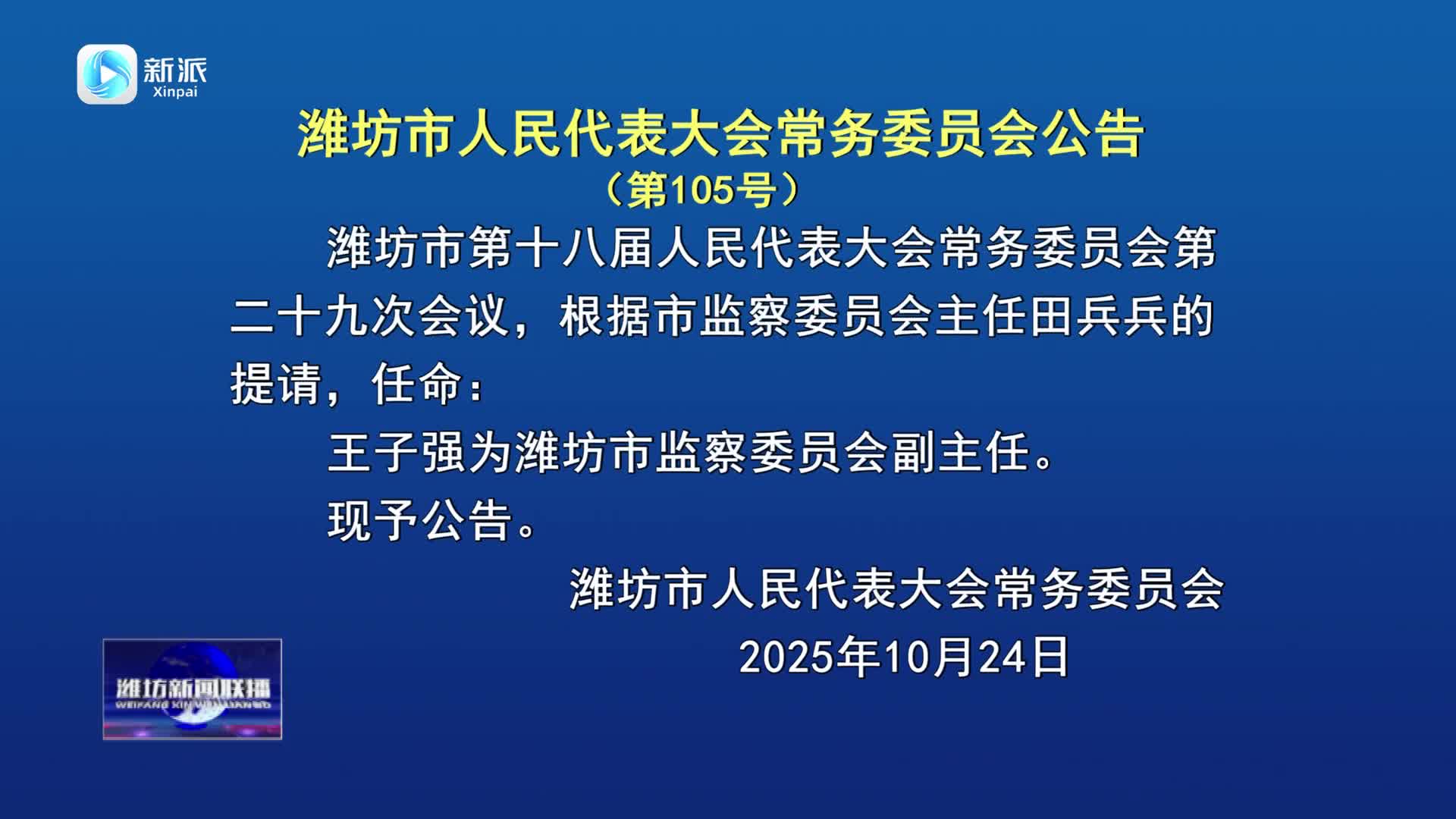 【潍坊新闻联播】潍坊市人民代表大会常务委员会公告(第105号)