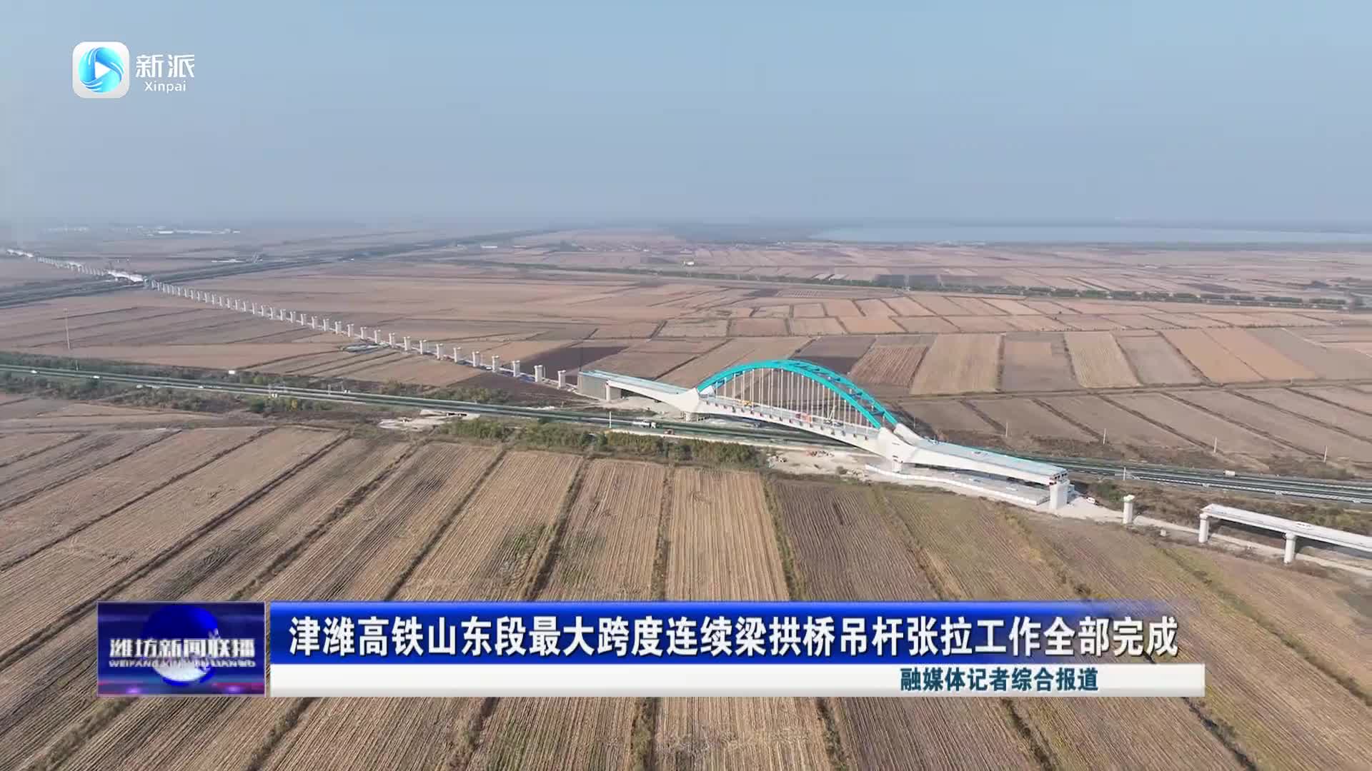 【潍坊新闻联播】津潍高铁山东段最大跨度连续梁拱桥吊杆张拉工作全部完成