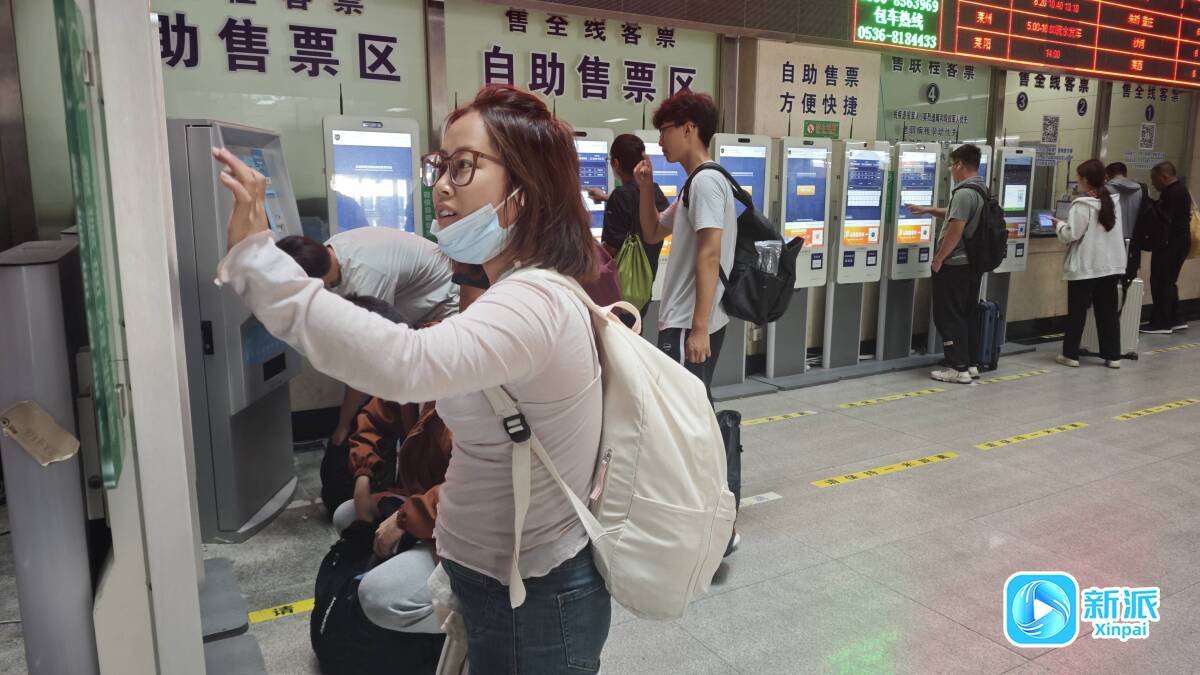 9月29日上午,潍坊公路客运总站售票大厅里的旅客明显多了起来,工作人员正忙着引导旅客使用自助设备购票。十几台自助售票机“火力全开”,旅客刷证、选班、付款,只需几十秒就能完成购票。