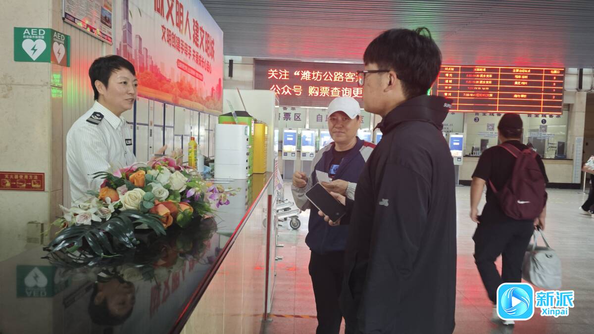 潍坊公路客运总站客服部主任董清华解答旅客疑问。